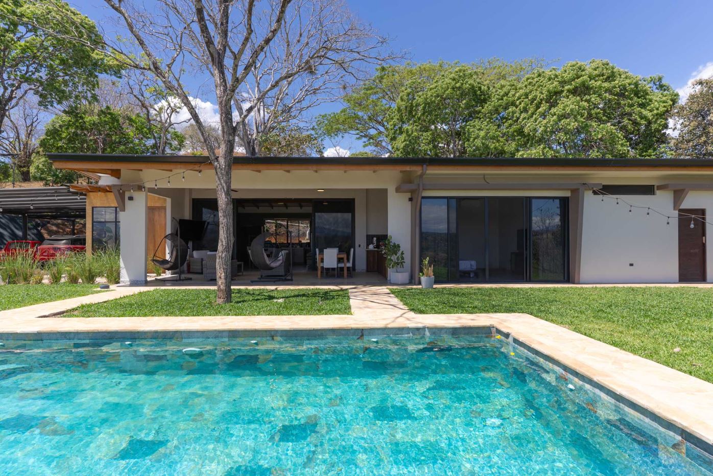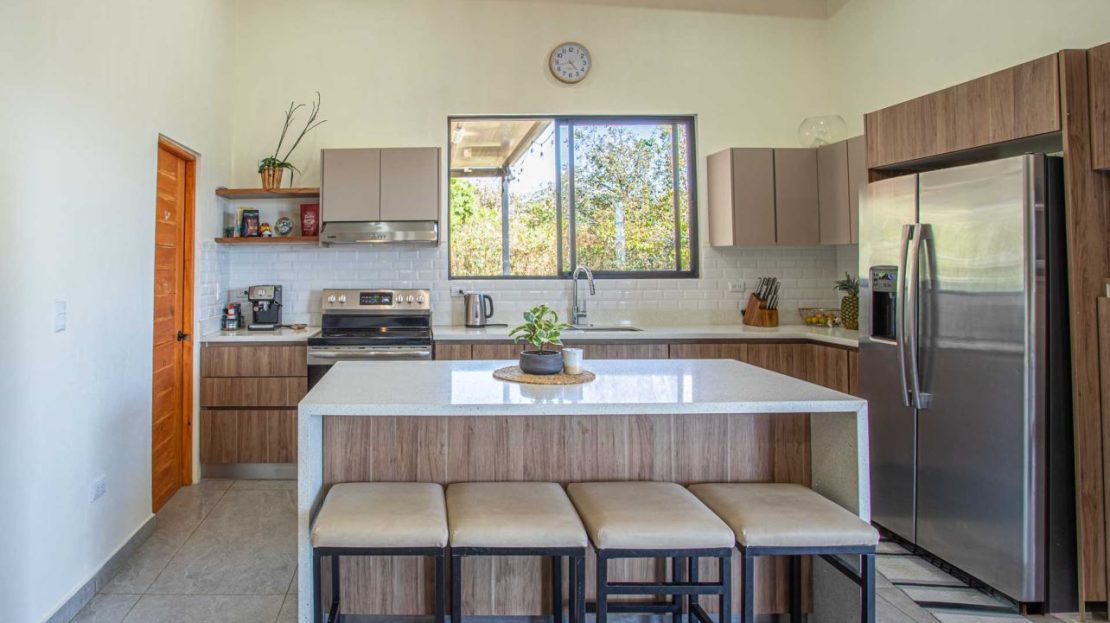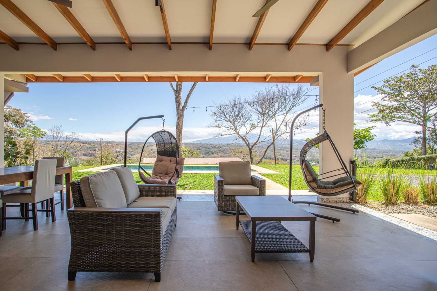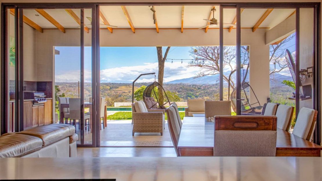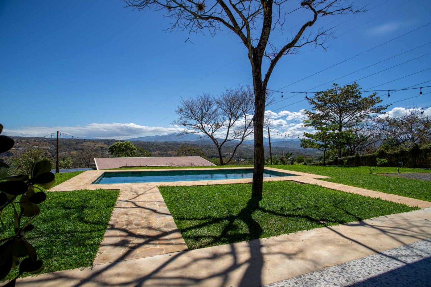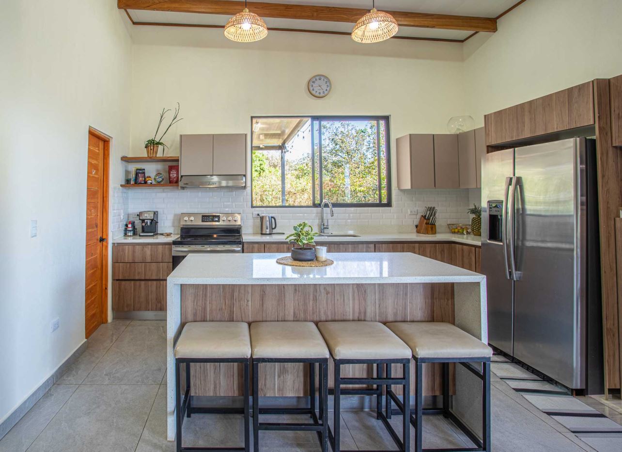 Eclectic modern meets traditional home with views in a farm setting located no more than 5 minutes from Atenas Center and 5 minutes from the new highway 27. The home features two private gates that leads to a hilltop with views of the Central Valley mountains and much of San Jose. The nice size yard is nicely landscaped throughout. The artesenal main formal entry wooden door leads to a inner terranium and office nook. The open living room has plenty of space for the formal dining room, living room and ample modern kitchen. There is nicely finished woodwork throughout the outside and inside of the home. The main extra large master bedroom suite leads to a bathroom with shower and tub and two double sinks with an added walk in closet. There are two nice size guest rooms with guest bathroom. There is an added room for an office or any other use with a third adjacent full bathroom. Outside there is a half bathroom for pool use. Come find your new Atenas home in Costa Rica!