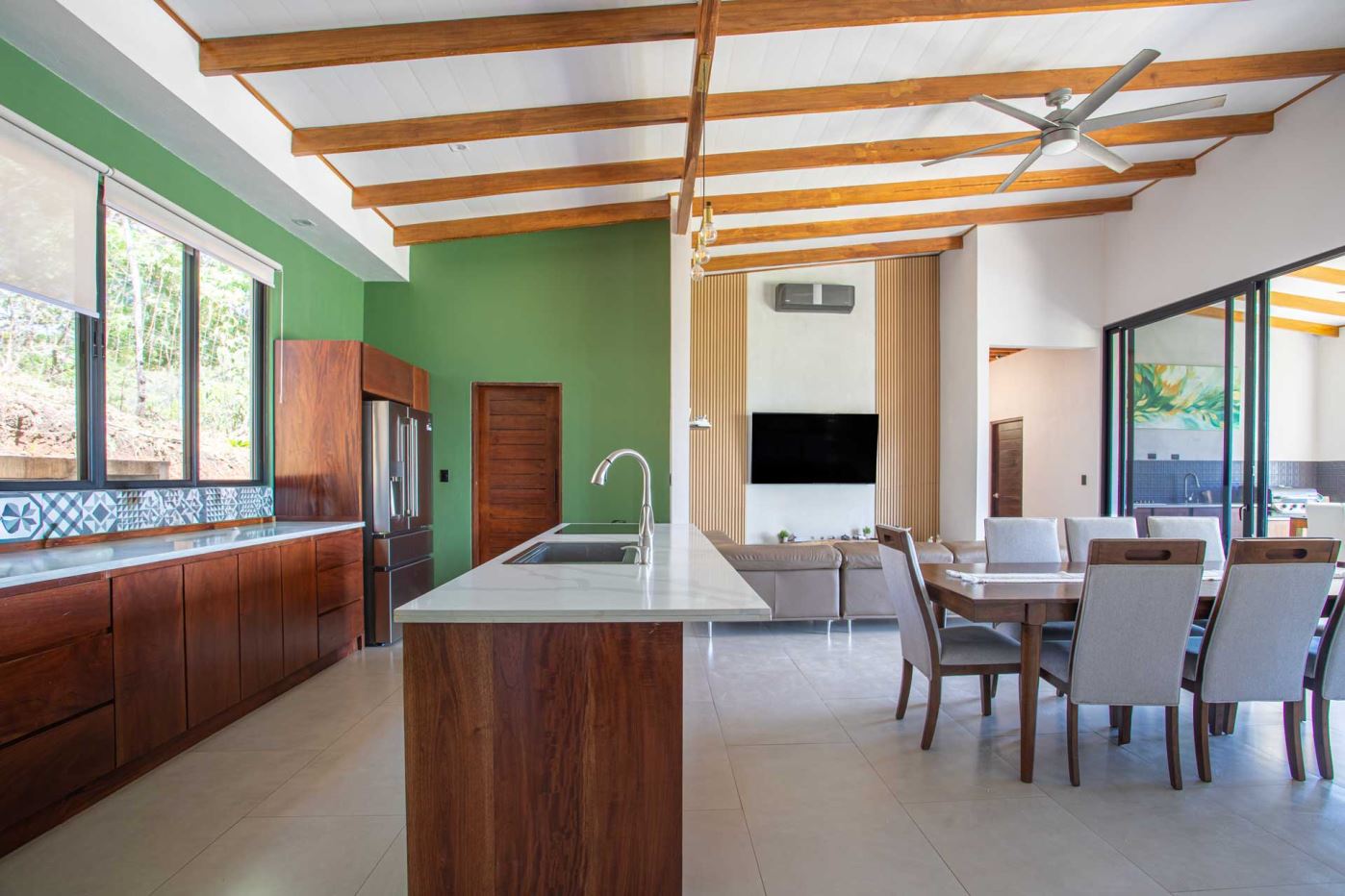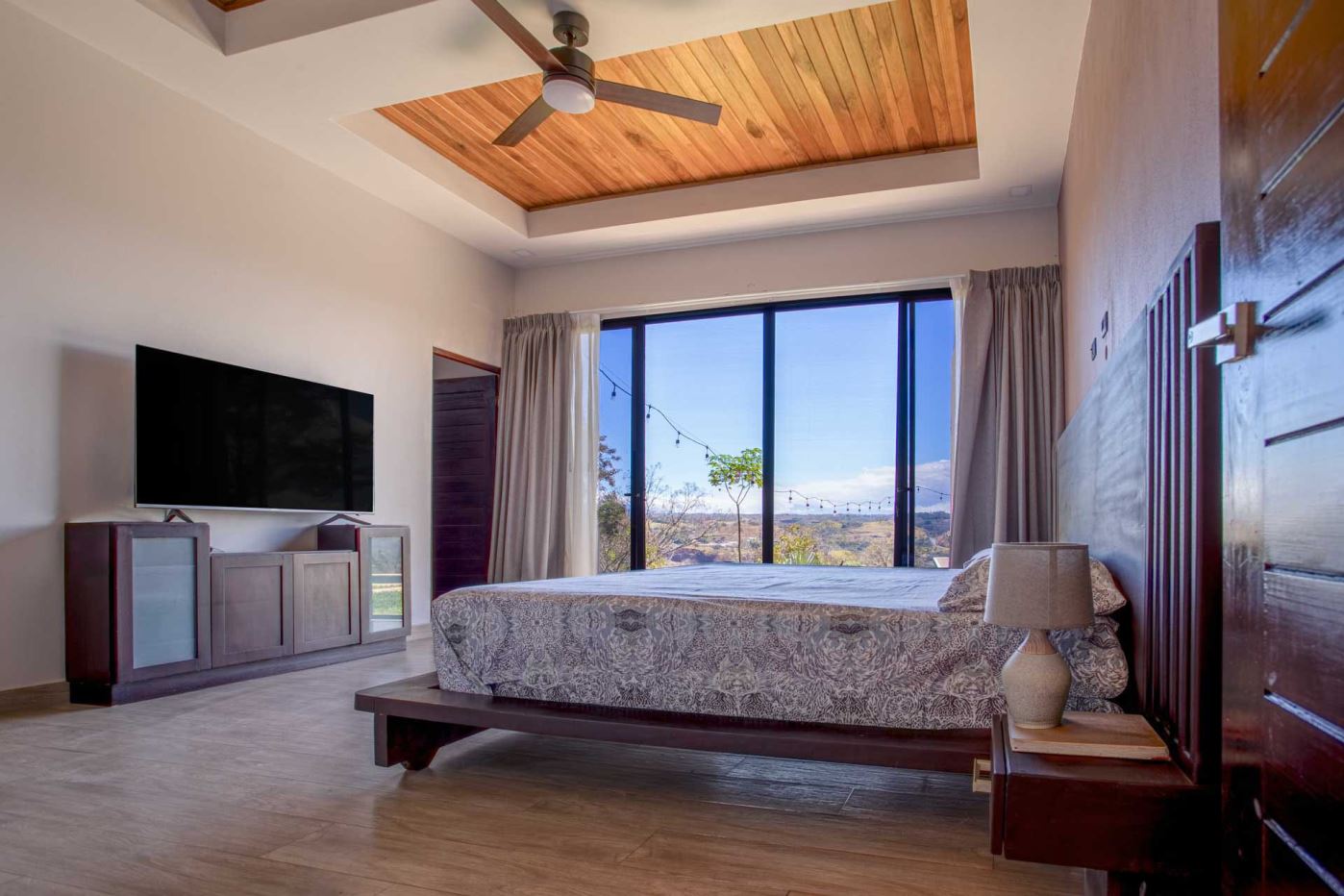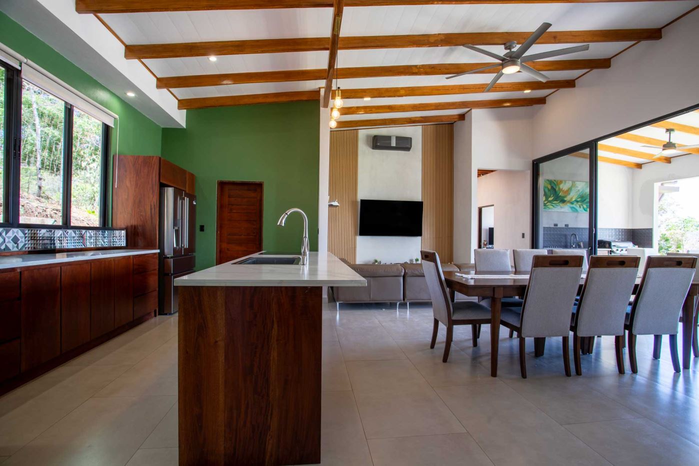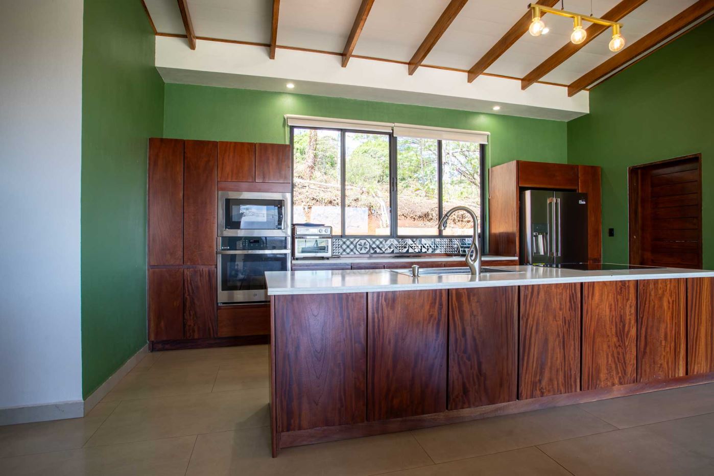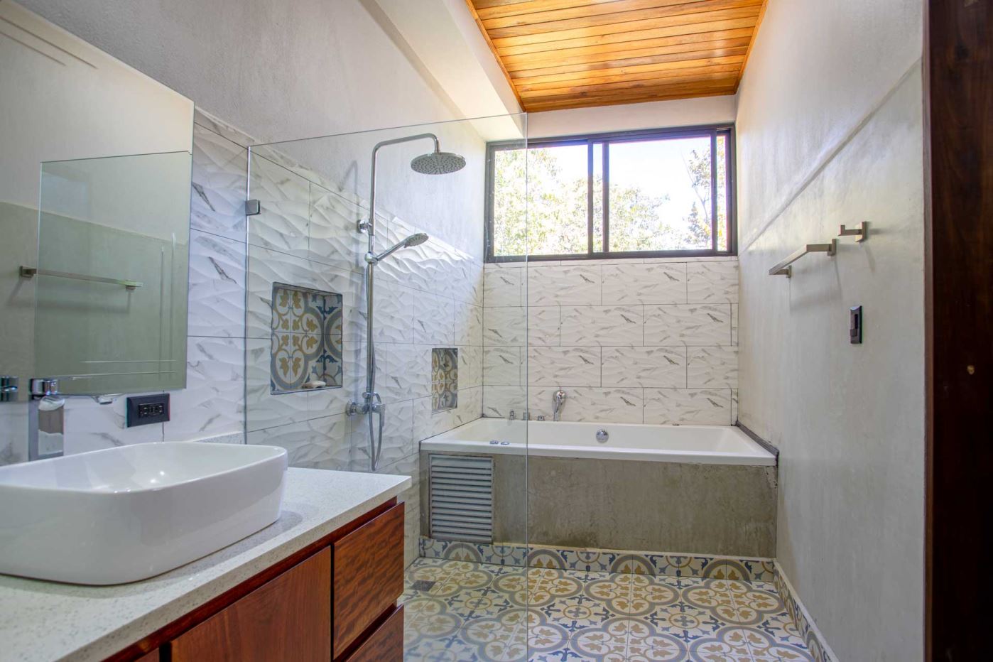 Eclectic modern meets traditional home with views in a farm setting located no more than 5 minutes from Atenas Center and 5 minutes from the new highway 27. The home features two private gates that leads to a hilltop with views of the Central Valley mountains and much of San Jose. The nice size yard is nicely landscaped throughout. The artesenal main formal entry wooden door leads to a inner terranium and office nook. The open living room has plenty of space for the formal dining room, living room and ample modern kitchen. There is nicely finished woodwork throughout the outside and inside of the home. The main extra large master bedroom suite leads to a bathroom with shower and tub and two double sinks with an added walk in closet. There are two nice size guest rooms with guest bathroom. There is an added room for an office or any other use with a third adjacent full bathroom. Outside there is a half bathroom for pool use. Come find your new Atenas home in Costa Rica!