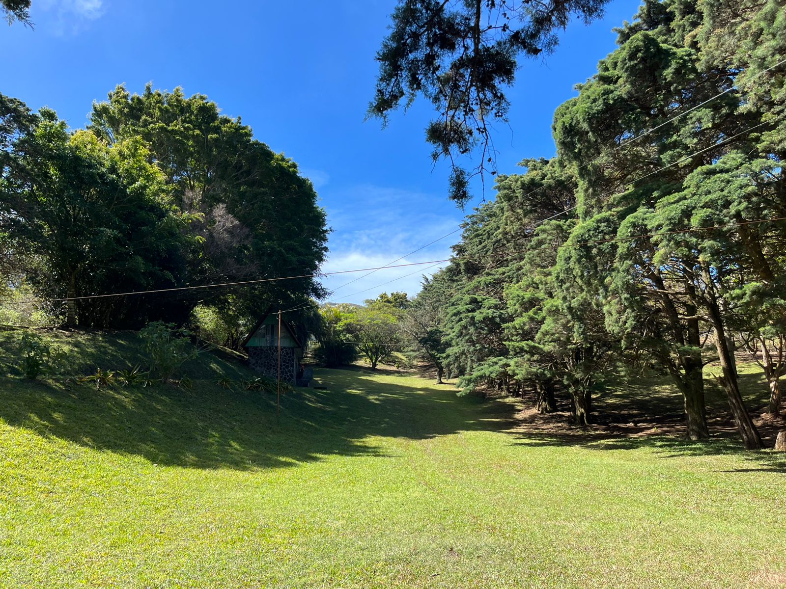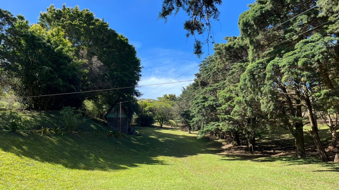 Topography includes flat areas at the highest elevation with spectacular views, plus secondary forest and pastureland in the lower sections.