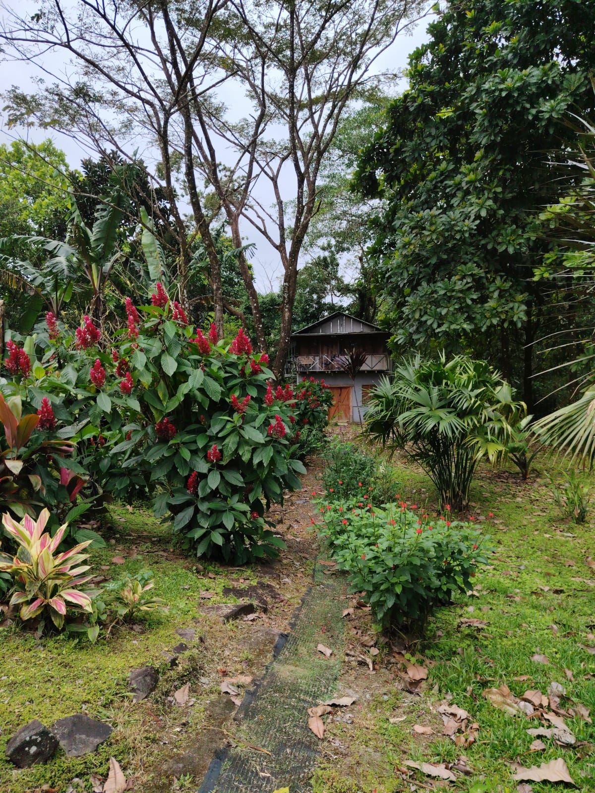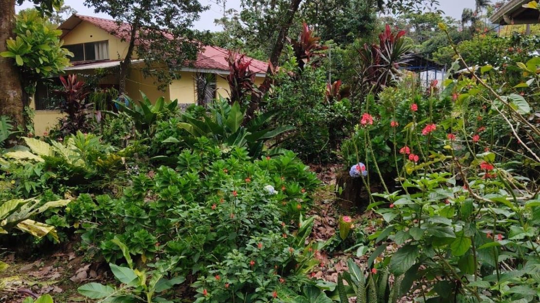 The property borders the Bijagua River, keeping the gardens vibrant year-round and attracting abundant wildlife including howler monkeys, white-faced monkeys, sloths, red and green frogs, toucans, scarlet macaws, parrots, owls, and occasionally tapirs and agoutis.