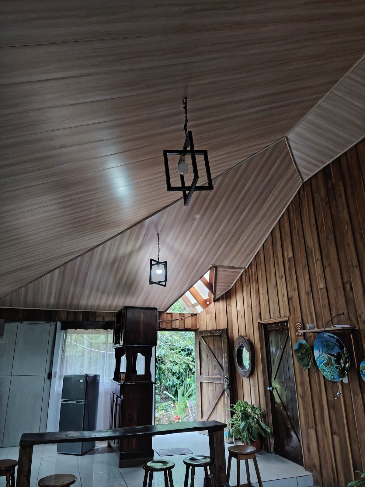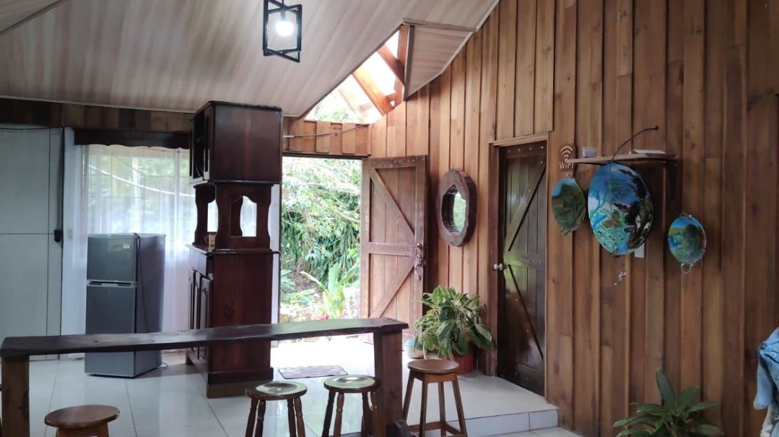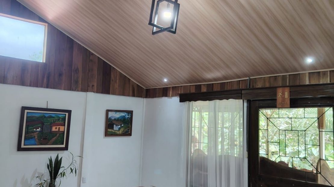 La propiedad incluye mobiliario elaborado en maderas finas como cenízaro y guanacaste, reconocidas por su durabilidad y belleza natural. Las piezas presentan acabados rústicos artesanales que resaltan las vetas y tonalidades propias de la madera, aportando carácter, autenticidad y armonía con el entorno natural.