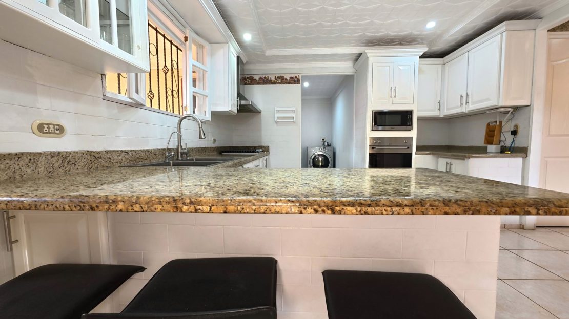 Cocina: con amplio espacio de almacenamiento, alacena independiente, sobres de granito, torre de hornos y refrigeradora con filtro de agua.