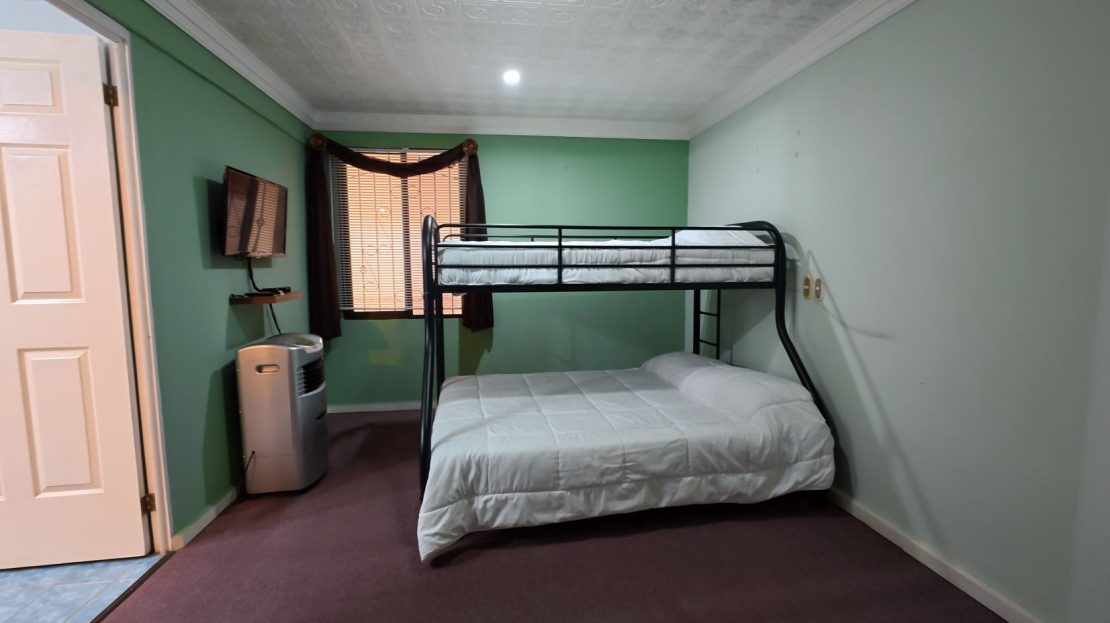 Bedroom 3: with walk-in closet, private bathroom, and air conditioning.