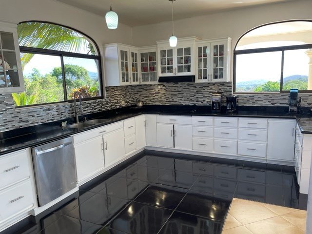 Elegant Atenas estate & functioning coffee farm.A beautifully furnished home with luxurious finishes and modern amenities.This two story furnished home features an open floor plan that includes a fully equipped chef’s kitchen and spacious dining room / living room areas that lead to the terrace and infinity pool overlooking the city. Two large suites are located on the ground floor and a third master suite is on the second floor. Each suite includes private bathrooms and walk-in-closets. Two additional independent identical wings with 1 bedroom/1 bathroom suite are found on each side of the main home. Finishes include an ample amount of marble, granite, exotic hardwoods and custom iron work. The estate also includes a fully furnished two-bedroom guesthouse for a caretaker or friends / family visiting from out of town.Almost 10 acres with beautiful landscaping bordering the cajon river with a fully functioning coffee plantation made up of 10,000 coffee plants that produce 10,000 coffee bags on site using an experienced crew making this agricultural project fully turn key. The 9.8 acre property is completely fenced and located at the end of a private road. The beautiful Rio Cajon flows on the border of the property. A cabin made from exotic wood overlooks the river and includes fresh water, electricity, and a full bath. The grounds include paved internal roads and beautifully landscaped gardens with over 200 fruit trees (Mango, lemon, lime, bananas, tangerines, orange and coconut palm trees) and extensive lawns. A private well feeds two 10,000-liter water tanks to supply fresh water for the main home, guest house and landscaping. An added hobbit style home can be found near the river and a picturesque path leads to a total 1km hike bordering the river with an amazing private waterfall and river (80ft) bordering the property. Added amenities include an olympic size tennis court and butterfly garden.The property can be purchased turn-key including furniture, appliances, coffee tools and if a buyer would want to keep the present employees.