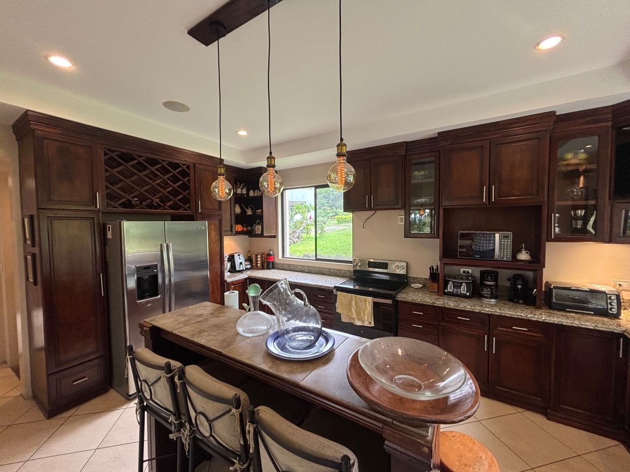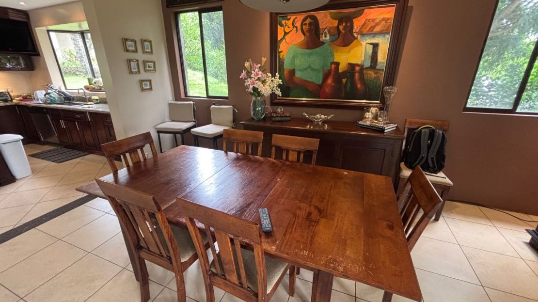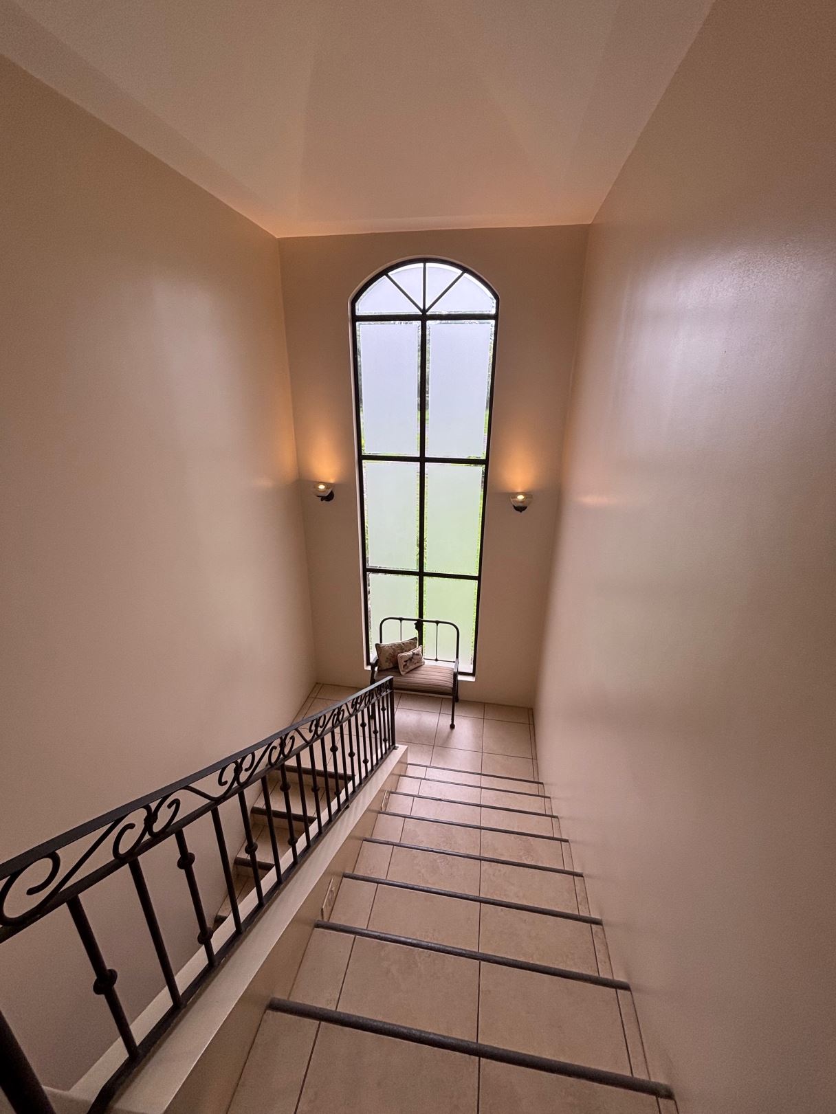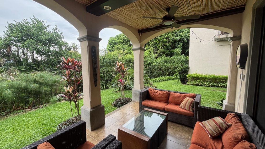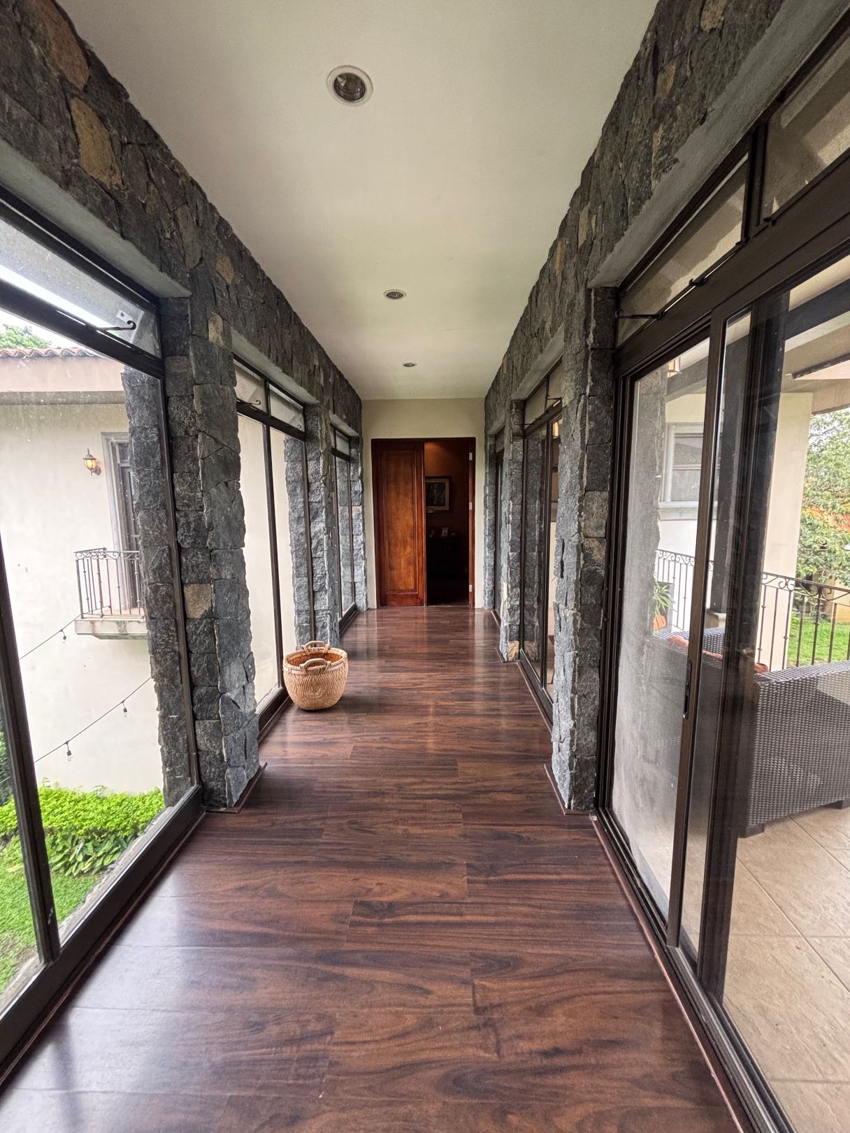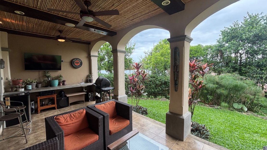 Elegant colonial style home in private community countryside setting. The gate and long private driveway into a small gated community leads to this home and features a nice size front yard with plenty of parking. The home’s formal entry leads way to a nice size living room, dining room and large kitchen. The back porch leads to large covered sitting and bbq area with an inviting back yard ideal for a private pool. On the opposite end of the first floor is a laundry area with 2 car garage and an adjacent service room and bathroom and guest half bathroom. The home has artesenal woodwork throughout. The staircase leads to a second level with a large tv or second living room. There is the main bedroom suite, bathroom and walk in closet with 3 additional bedrooms. The main bedroom has its own private balcony overlooking the courtyard. The property enjoys use of a common community bbq area and inviting pool area. The property is close to all of the La Guacima services and just a short drive to the new highway 27.