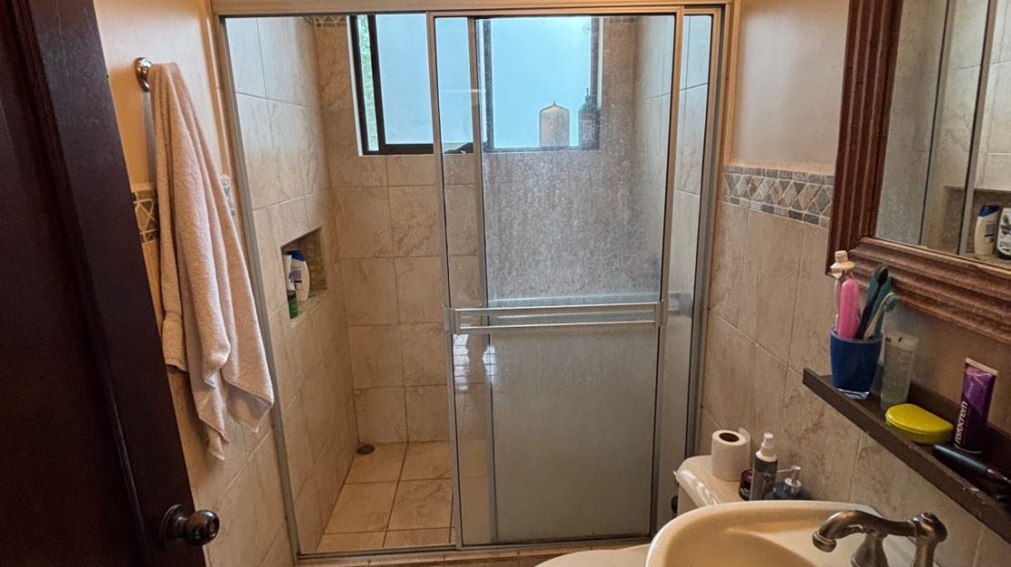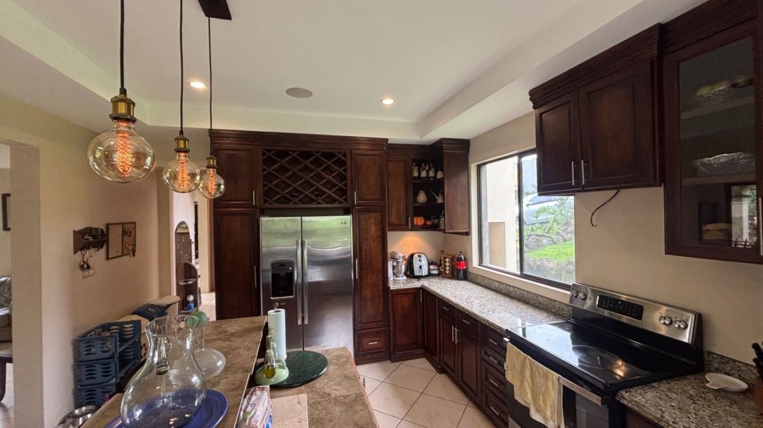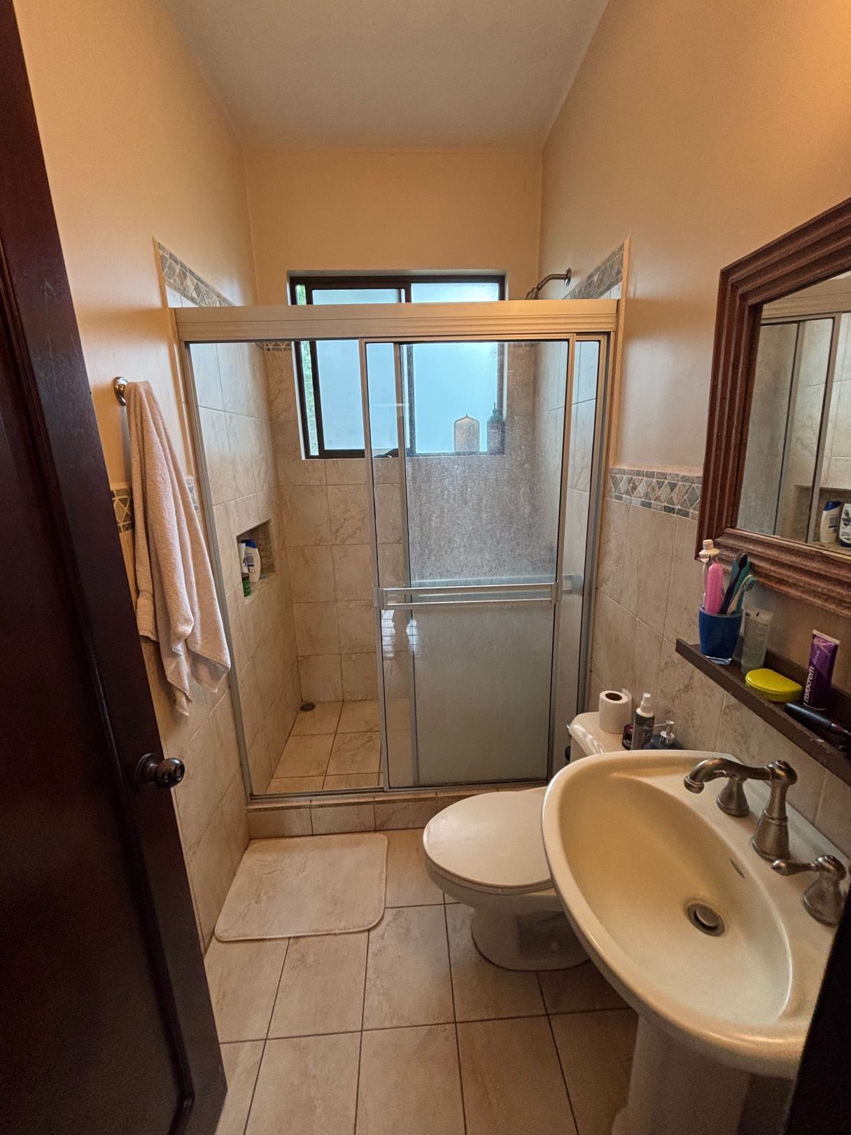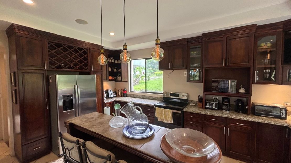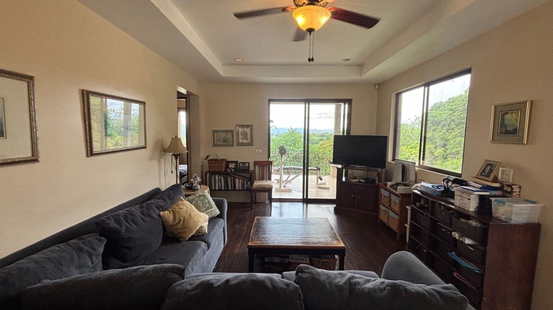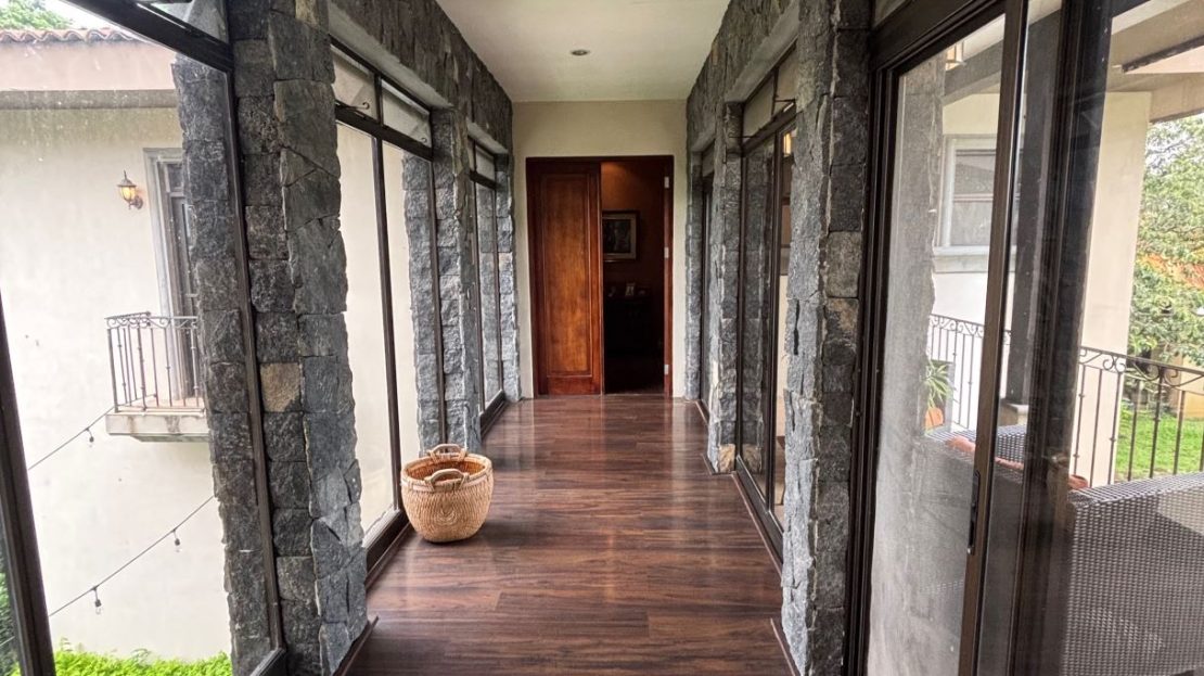 Elegant colonial style home in private community countryside setting. The gate and long private driveway into a small gated community leads to this home and features a nice size front yard with plenty of parking. The home’s formal entry leads way to a nice size living room, dining room and large kitchen. The back porch leads to large covered sitting and bbq area with an inviting back yard ideal for a private pool. On the opposite end of the first floor is a laundry area with 2 car garage and an adjacent service room and bathroom and guest half bathroom. The home has artesenal woodwork throughout. The staircase leads to a second level with a large tv or second living room. There is the main bedroom suite, bathroom and walk in closet with 3 additional bedrooms. The main bedroom has its own private balcony overlooking the courtyard. The property enjoys use of a common community bbq area and inviting pool area. The property is close to all of the La Guacima services and just a short drive to the new highway 27.