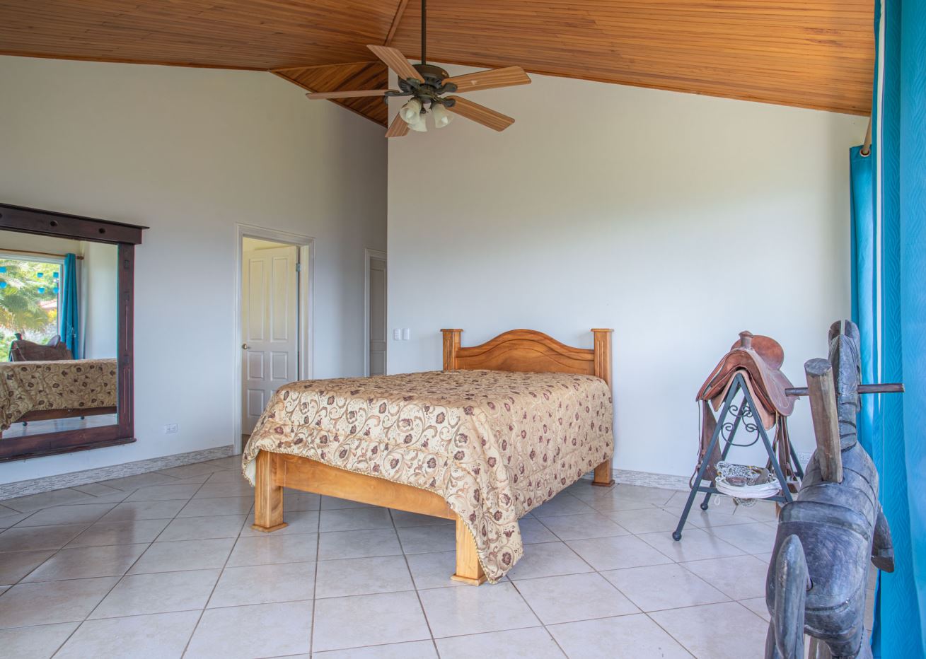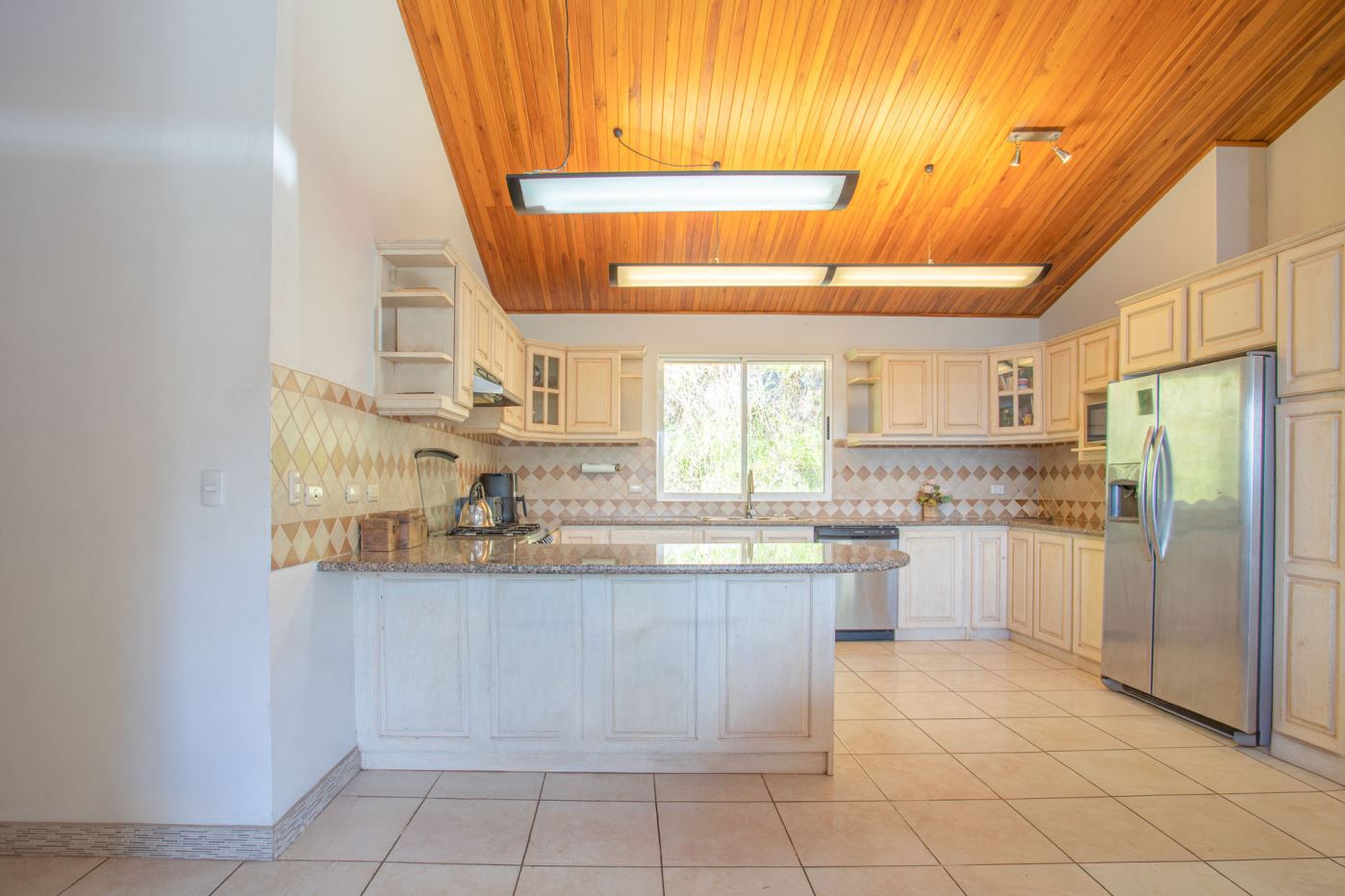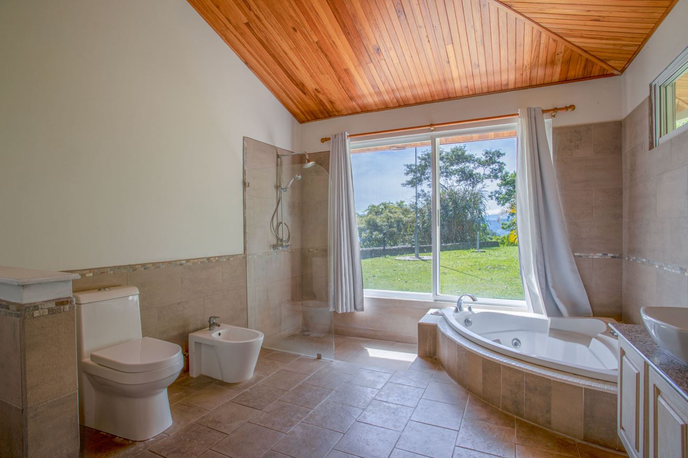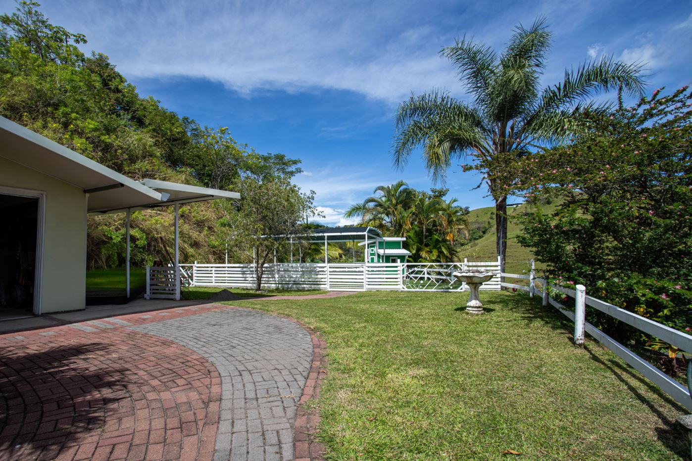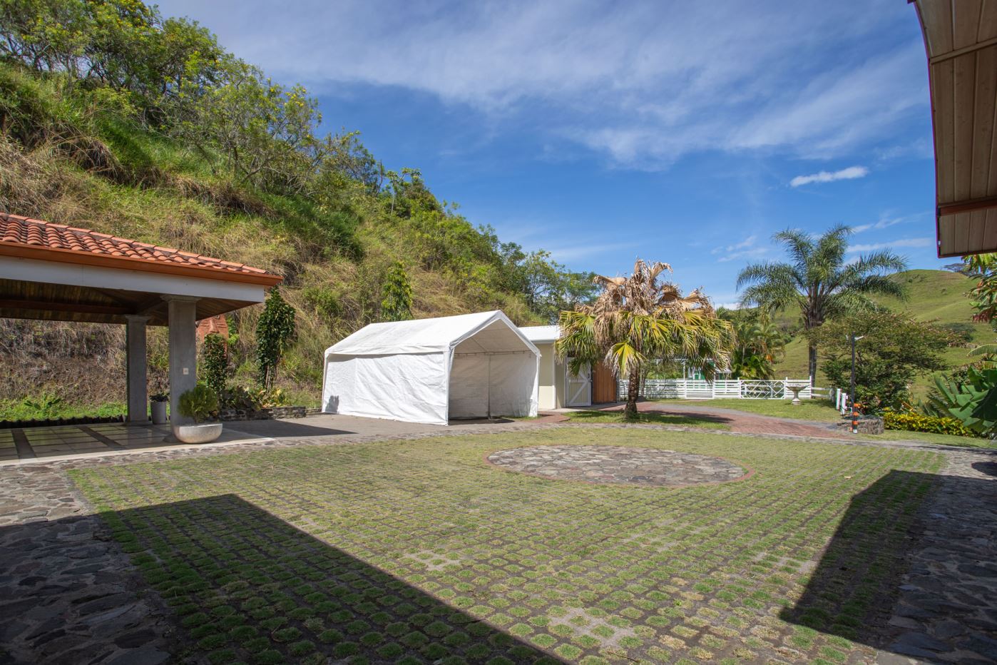 This elegant Mediterranean-Style Home is located in the exclusive community of Hacienda Atenas which is located just 6 minutes from town center but is in the relaxed countryside and cooler climate hills above Atenas Center with plenty of elbow room between the area’s homes. The long private entrance of the home features several storage and garage areas which can easily be refurbished to any number of uses. There’s plenty of parking ideal for a crowd and the property is nicely surrounded by manicured gardens. There is plenty of outside covered porch areas ideal for outside living. There’s a nice size swimming pool with an infinity edge with inviting deck areas that overlook the amazing area mountains.