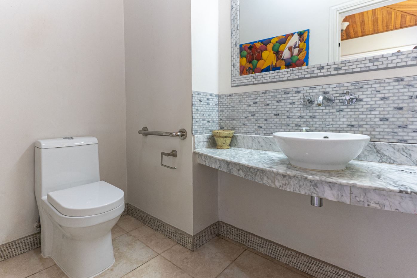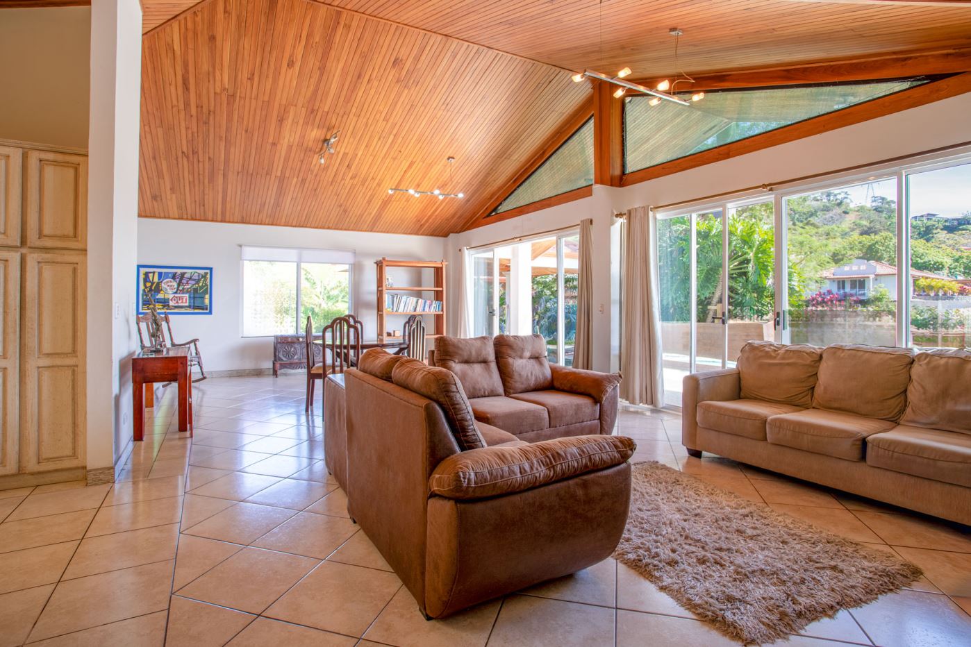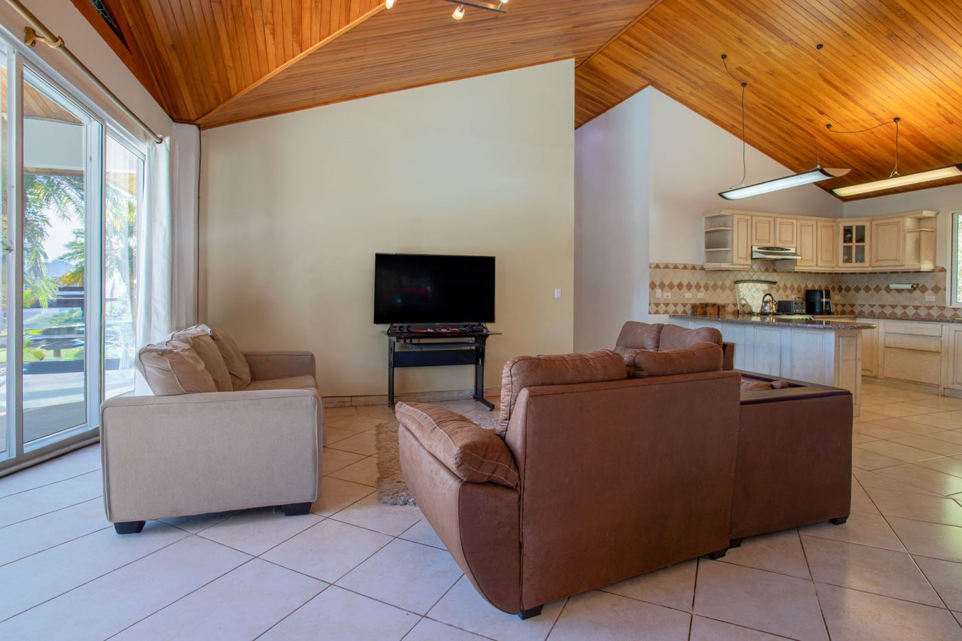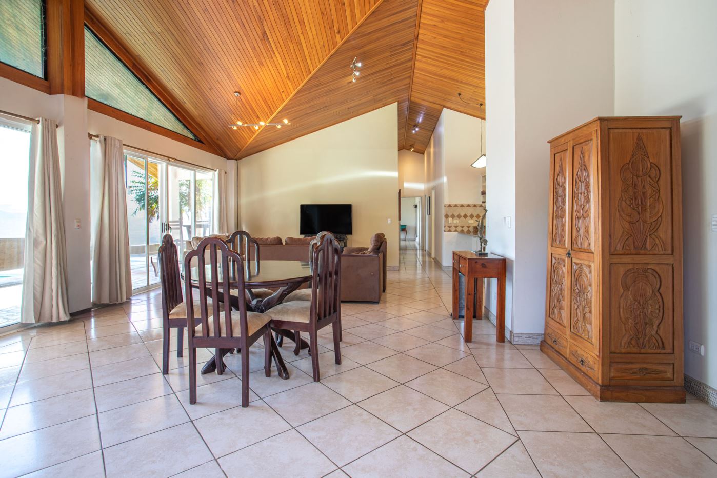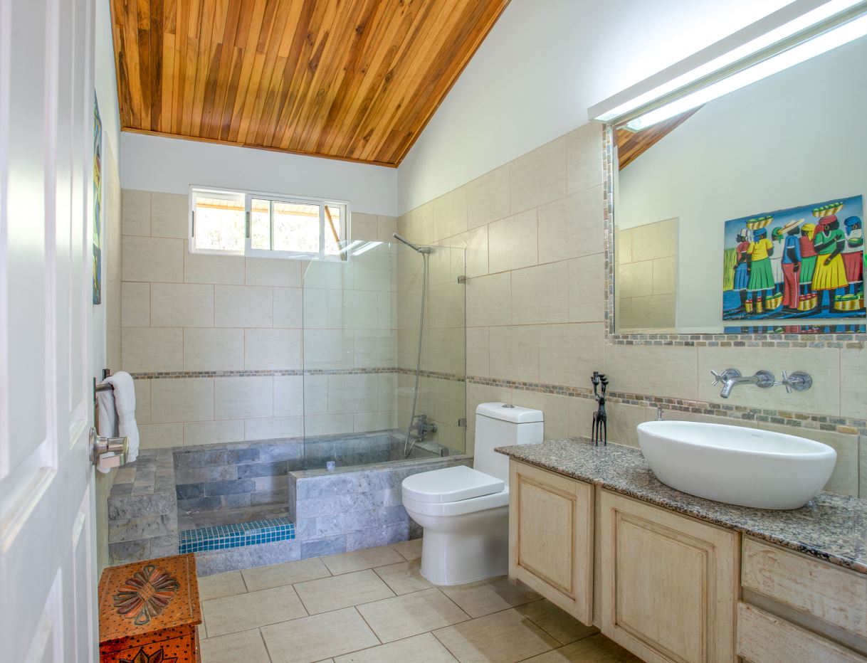 Al entrar a la casa, se encuentra una espaciosa sala de estar, comedor y una amplia cocina con carpintería artesanal. Adyacente hay un medio baño y un amplio lavadero/cuarto de servicio. El largo pasillo conduce a dos dormitorios de invitados y un amplio baño de visitas. Al final de la casa se encuentra la amplia suite principal privada con baño en suite, lavabo doble, bañera y armario.