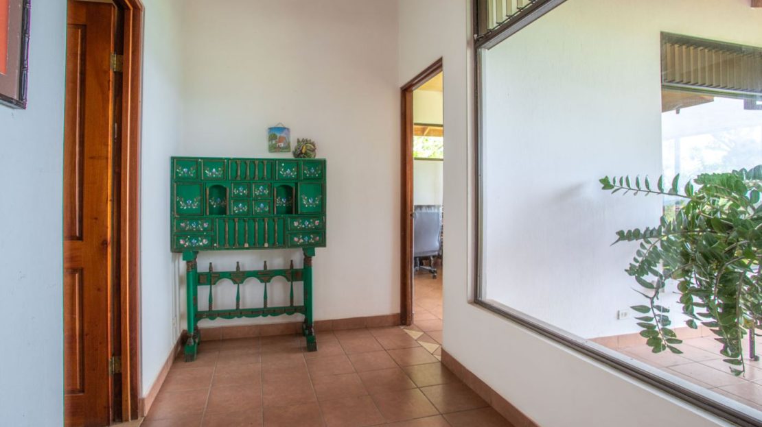 Elegante casa de estilo colonial español con vistas en Hacienda Atenas, ubicada a solo ocho minutos del Centro de Atenas, en la cima de una colina residencial con impresionantes vistas panorámicas de las montañas de la zona y rodeada de naturaleza. Ofrece amplio espacio entre los vecinos en un entorno seguro y privado, con un amplio patio ideal para construir más casas o para una piscina. La elegante entrada a la casa cuenta con altos techos estilo catedral con carpintería artesanal. Este espacio conduce a dos habitaciones y un baño de visitas. Un pequeño pasillo conduce a un aseo de visitas. En el extremo opuesto de las habitaciones se encuentra la suite principal. La amplia cocina da paso a una lavandería y un área de almacenamiento segura.