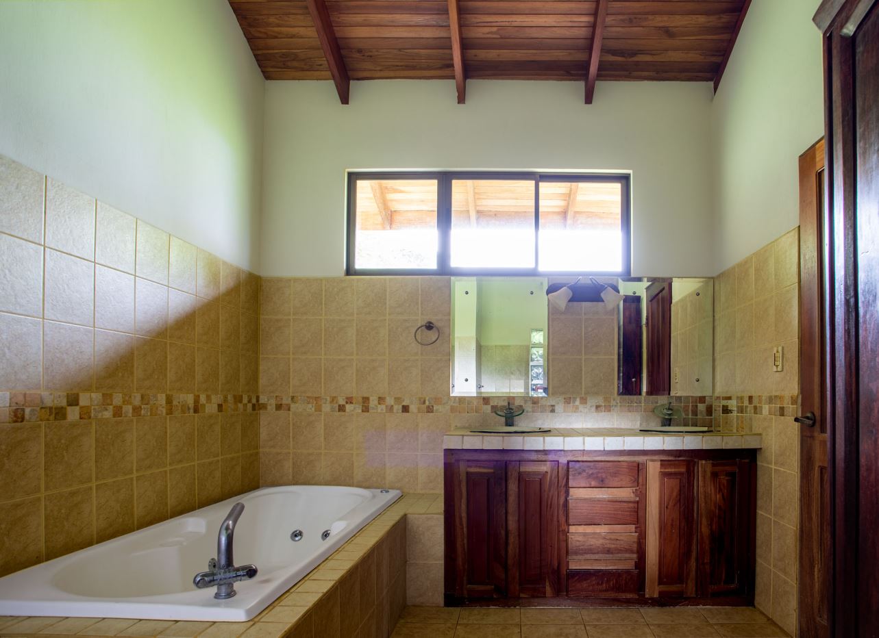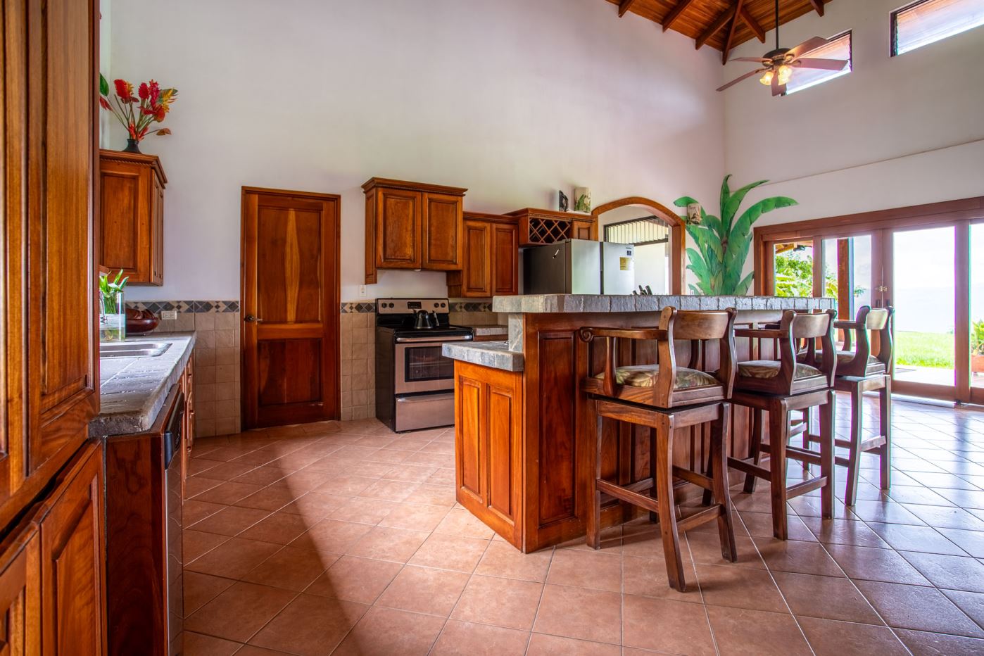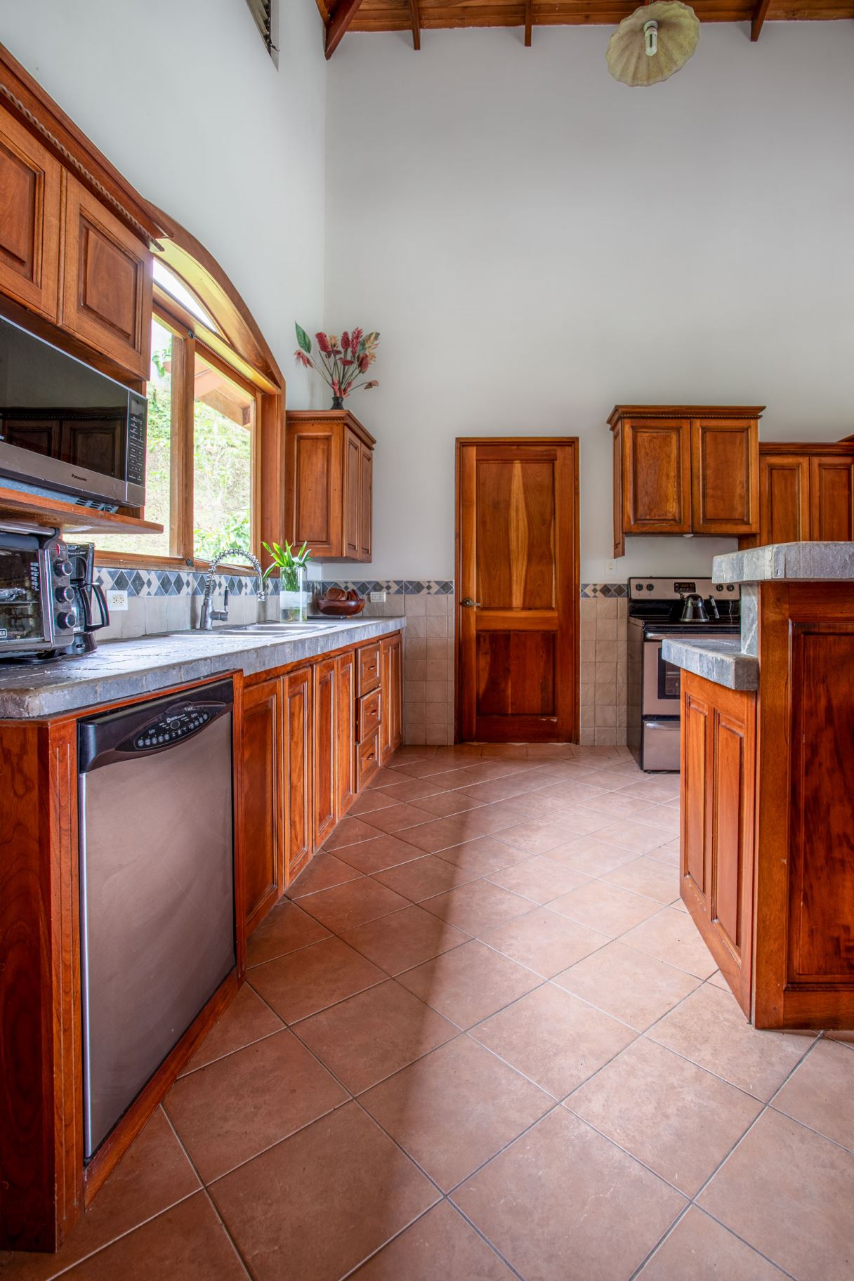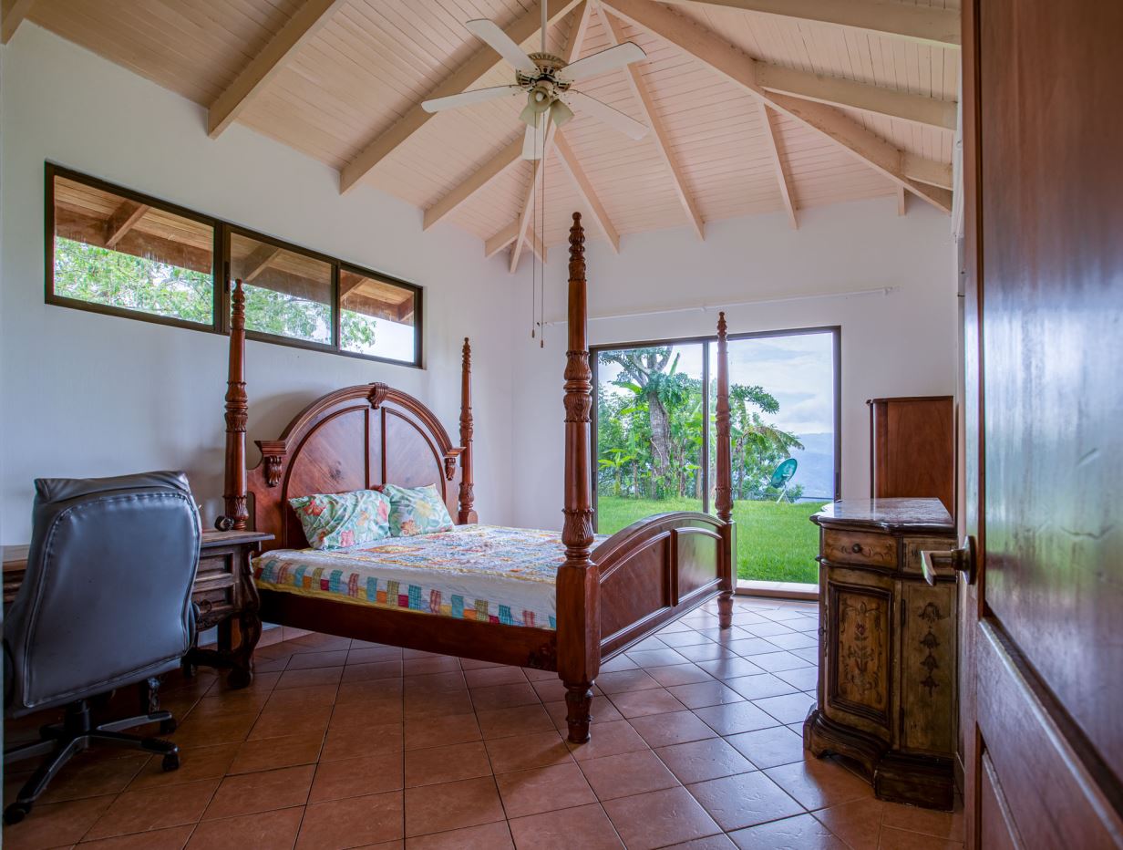 Elegant Spanish colonial style home with views in Hacienda Atenas is located just about eight minutes from Atenas Center and sits perched atop a resdential hill with amazing panoramic views of the area mountains and surrounded by nature. There is plenty of elbow room between the nieghbors in a secure and private setting with a nice size yard ideal for added builds or space available for a pool. The elegant entry into the home feautures tall cathedral ceilings with artesenal woodwork throughout. This space leads to two guest rooms and a guest bathroom, a small hallway leads to a guest half bath. On the opposite end of the guest rooms is a master bedroom suite. The large kitchen leads way to a laundry and secure storage area.