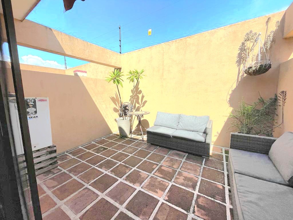 Al ingresar encontraremos una sala espaciosa con salida a una pequeña y agradable terraza que cuenta con toldo retractil en caso de que se quiera evitar el sol o la lluvia, además la cocina aparte con muebles remodelados, pisos laminados, baño para visitas, cuarto de pilas, hall de alcobas, habitación secundaria con salida a un patio de luz y habitación principal con baño y closet, 2 parqueos y bodega en sótano.