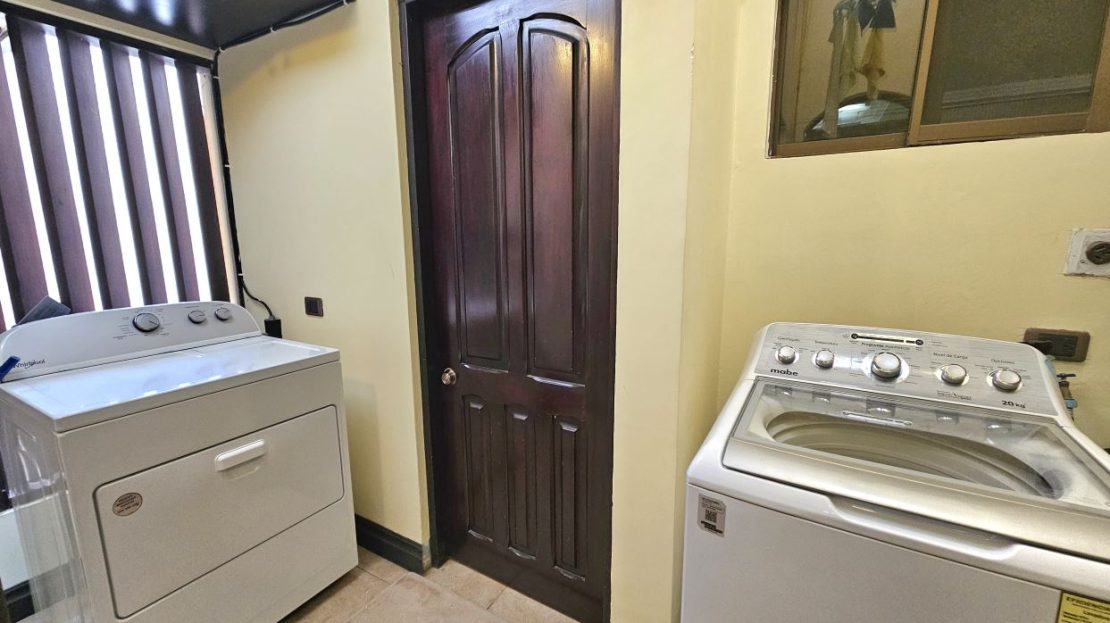 Laundry room and service quarters with a private bathroom, adding daily convenience and functionality
