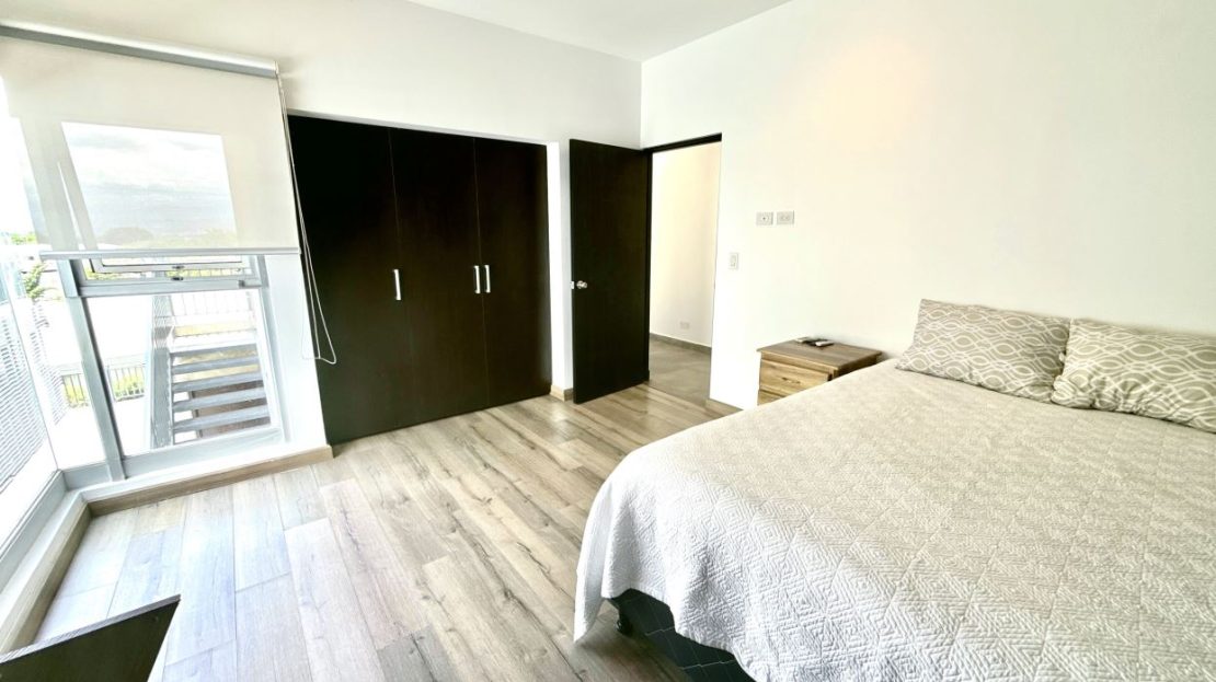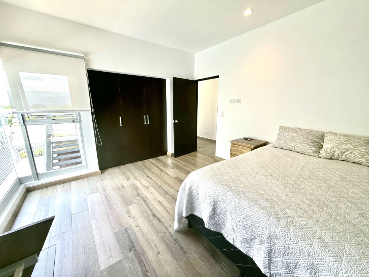 2 habitaciones amplias con pisos de porcelanato español, Split de A/C, persianas y grandes ventanales