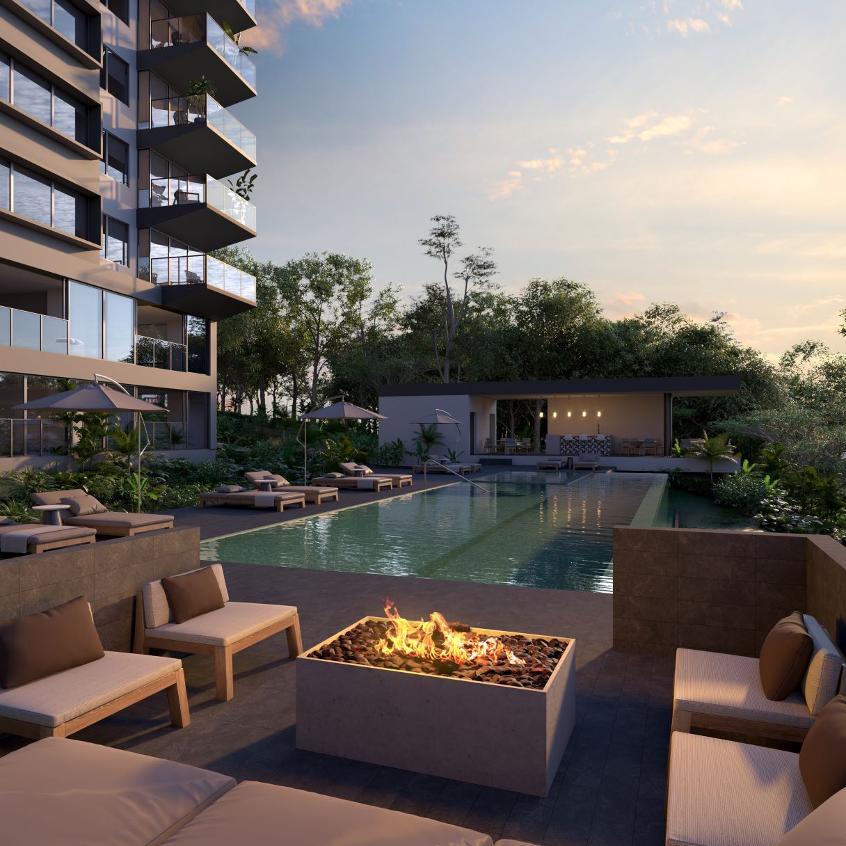 El proyecto es una expresión arquitectónica que se integra a la perfección con el entorno natural. Cada detalle ha sido cuidadosamente pensado para brindar un ambiente moderno y acogedor. Desde las amplias terrazas con vistas panorámicas hasta los espacios comunes diseñados para la interacción social, todo está impulsado por el diseño innovador.