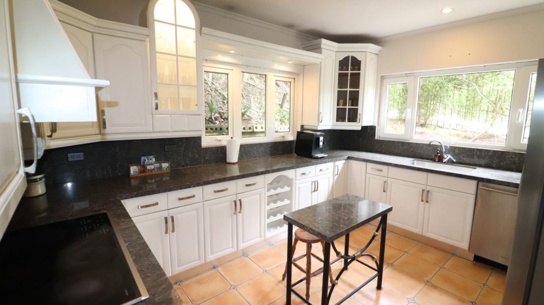 On the first floor, the home opens into a combined bright airy living and dining room—perfect for relaxation or hosting intimate gatherings. The living area flows through open glass sliders naturally into a magnificent terrace for breakfast or just comfort. The fully equipped kitchen, designed with extensive cabinetry is ideal for culinary activity. Every detail has been carefully considered, from the layout to the finishes, creating a space that is both practical and beautiful.