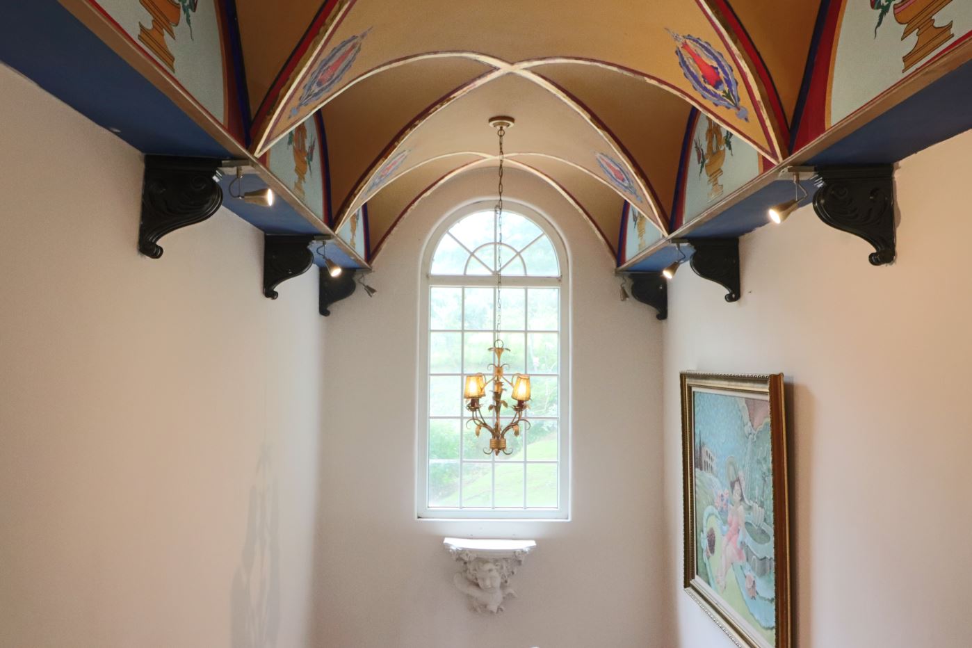 Upstairs, past the vaulted painted ornament ceiling you’ll find the private quarters with three well- appointed bedrooms. The primary suite offers a serene retreat with ample space, natural light, beautiful brick wall, balcony and oversize windows to enjoy the spectacular view. The master bath is modern with double sinks. The additional bedrooms are perfect for family, guests, or even a home office. Two full bathrooms serve the upper floor, complemented by a convenient half bathroom on the main level.