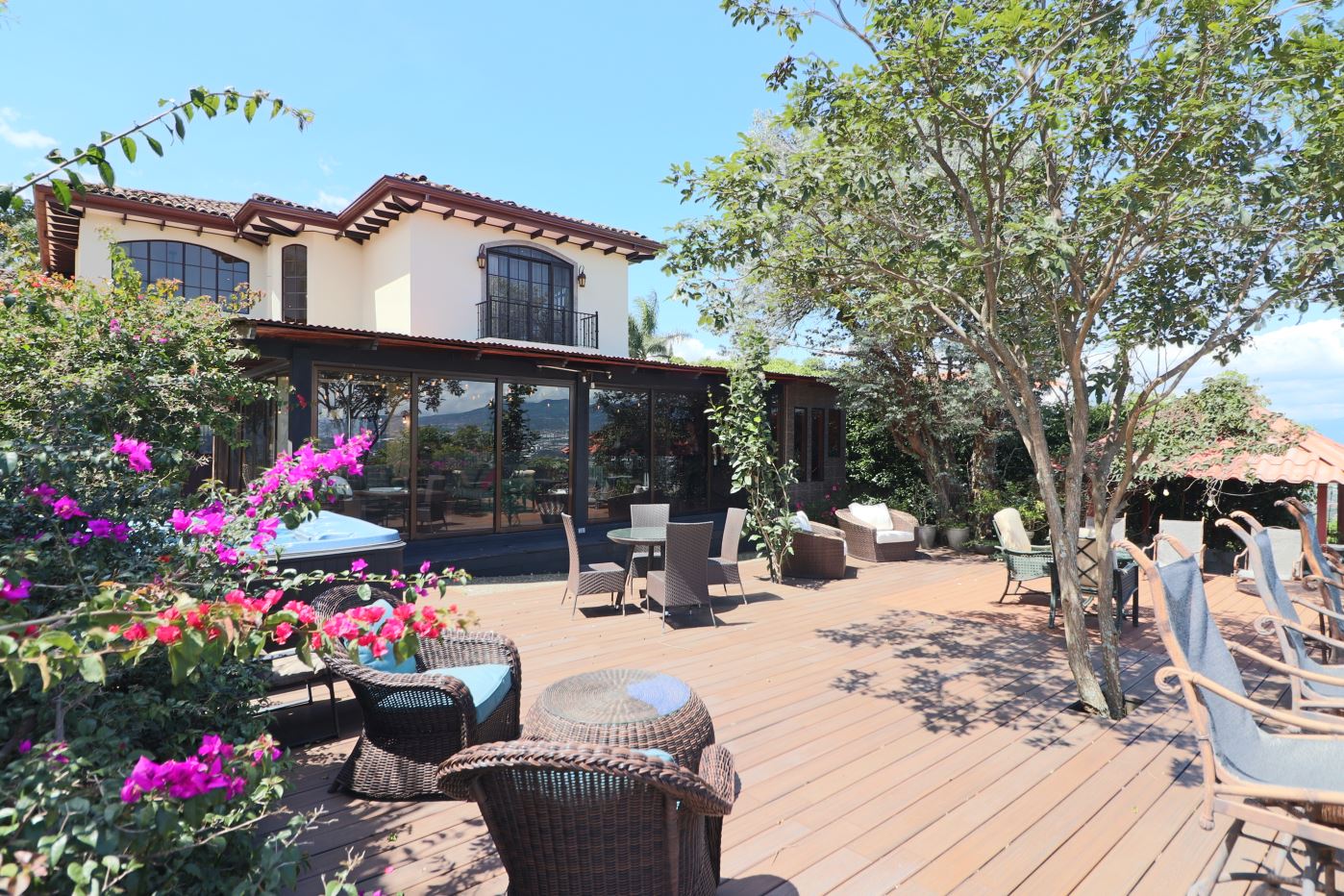Experience elevated living at “The Hollywood Home”, an exquisite turn key luxury rental perfectly situated above Escazu, offering breathtaking 180 degree panoramic views of the Central Valley and surrounding mountains. This stunning residence with outside pool and gym blends sophistication, comfort, and entertainment across two expansive floors.