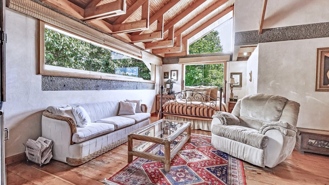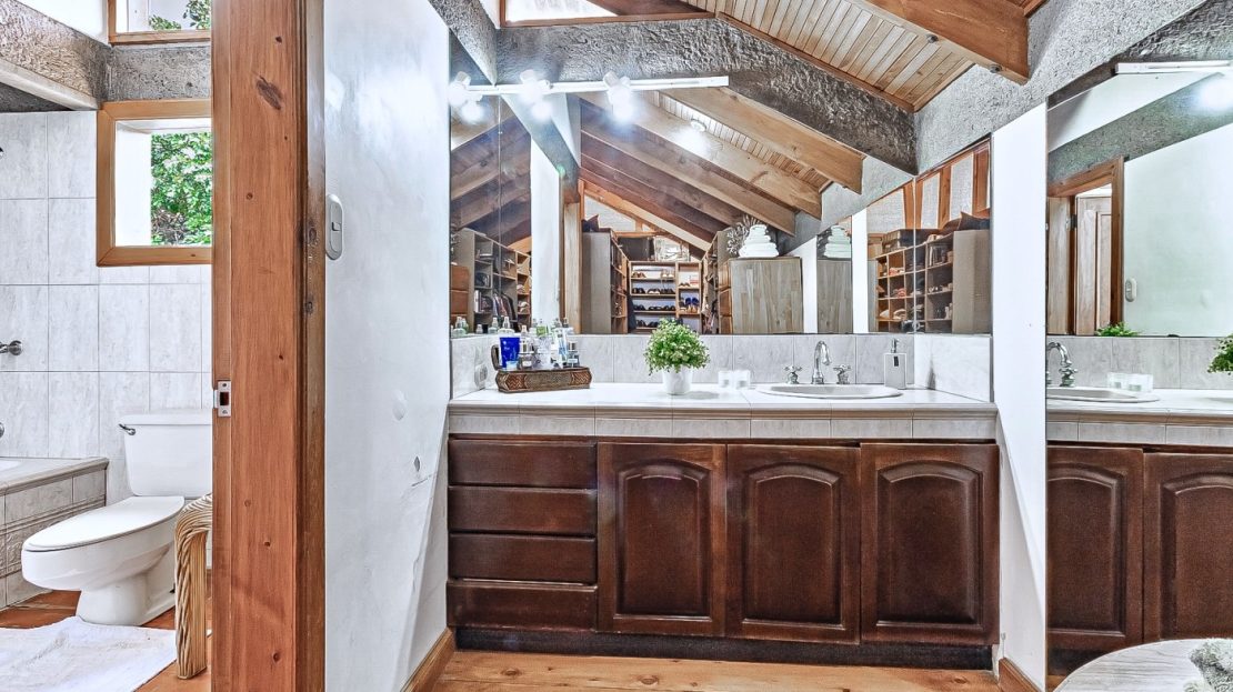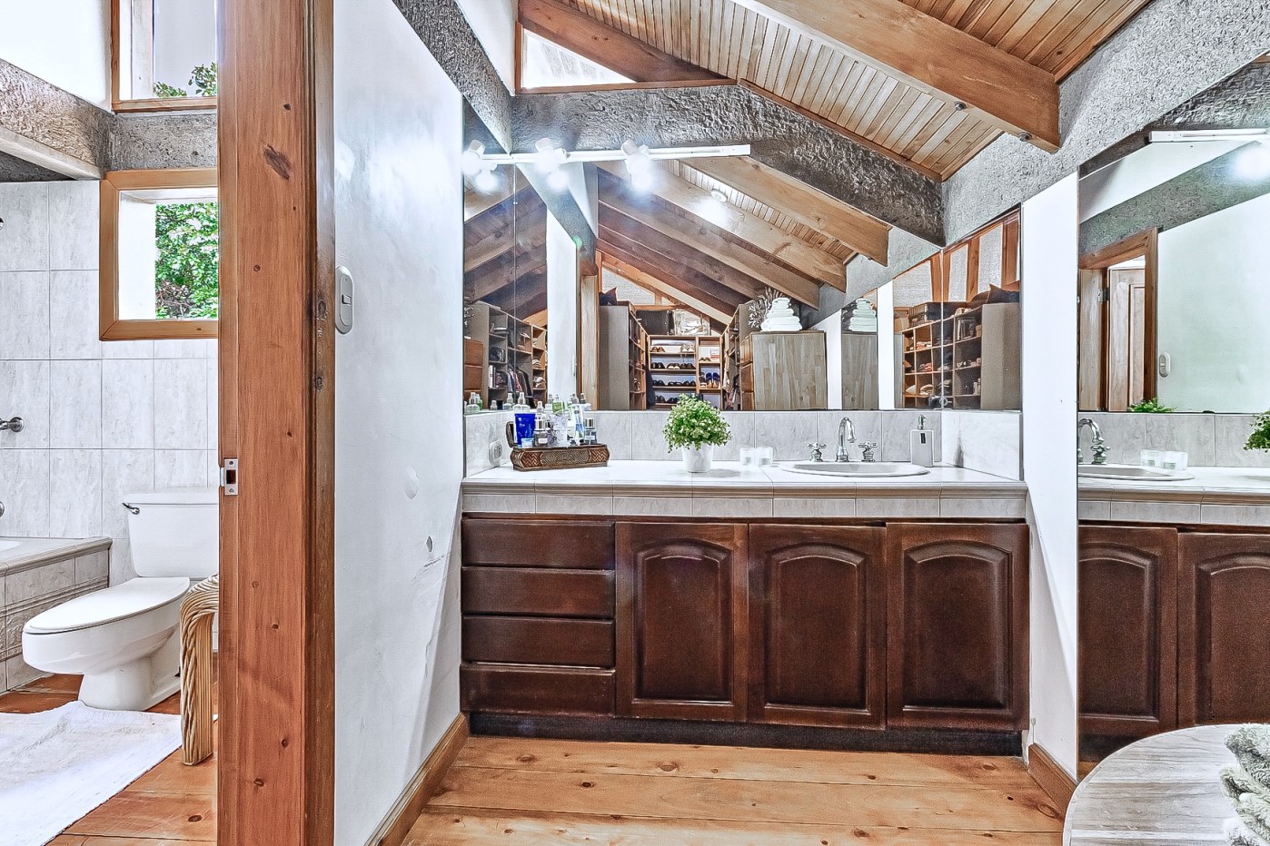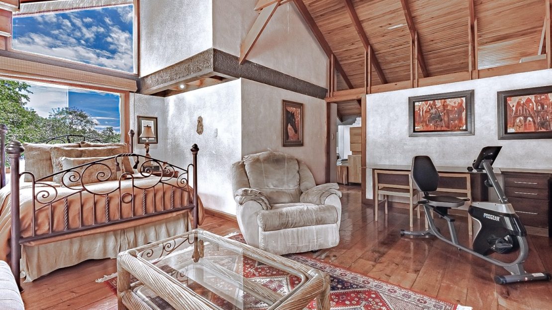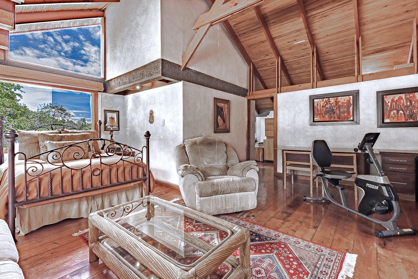 The Master bedroom boasts a vaulted wood ceiling with beams, lounge room, en-suite bathroom with jacuzzi and super large walk-in closet. The large windows and lounge room make this bedroom a prefect place to be in a secluded area for reading and enjoying the nature.