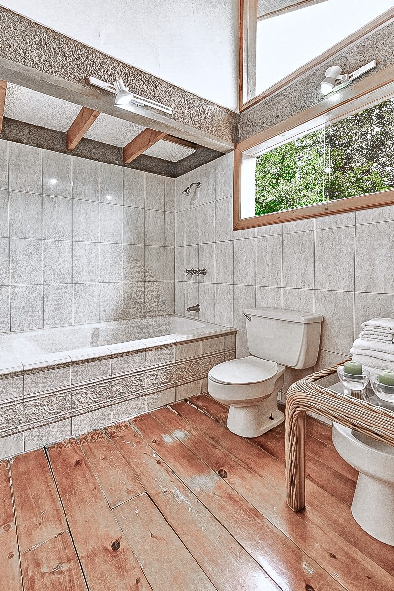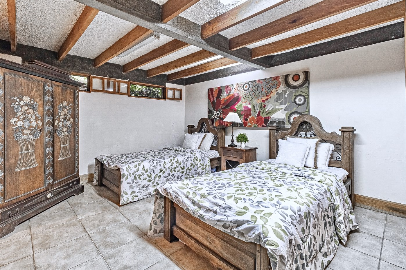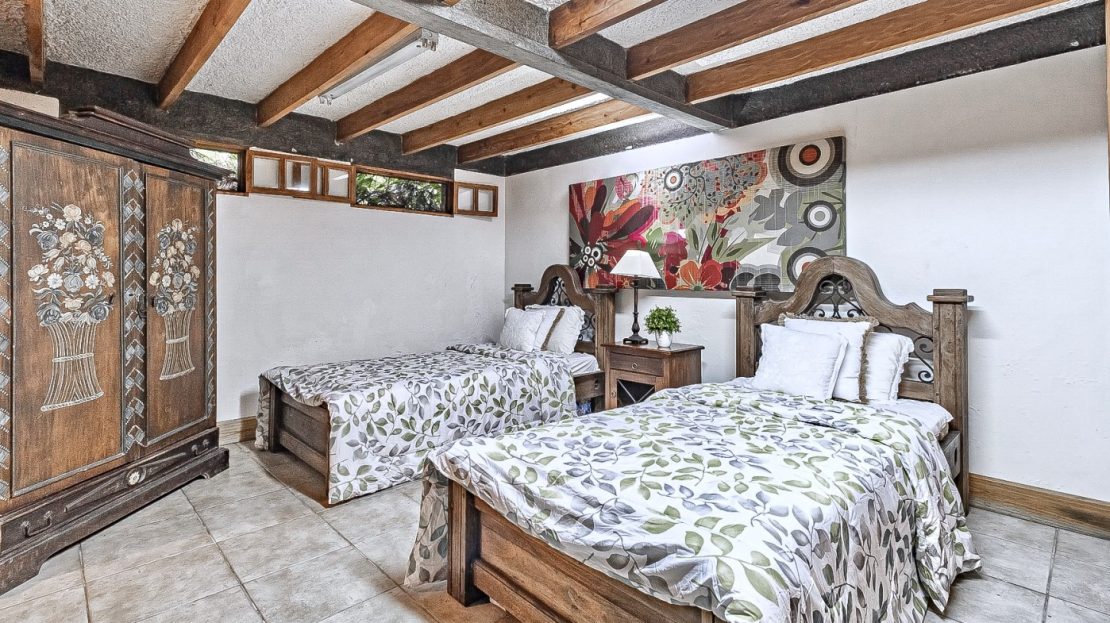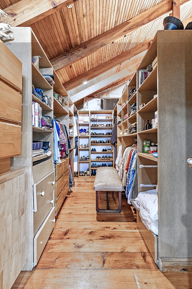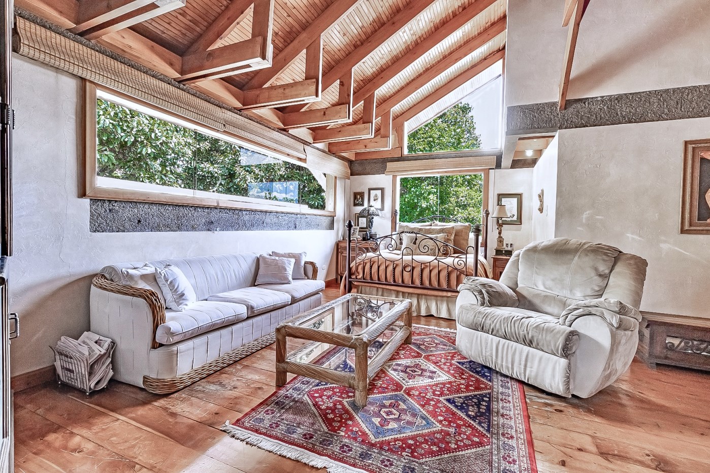 The Master bedroom boasts a vaulted wood ceiling with beams, lounge room, en-suite bathroom with jacuzzi and super large walk-in closet. The large windows and lounge room make this bedroom a prefect place to be in a secluded area for reading and enjoying the nature.