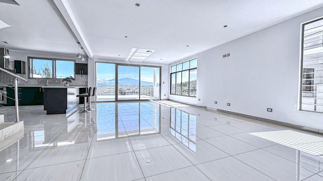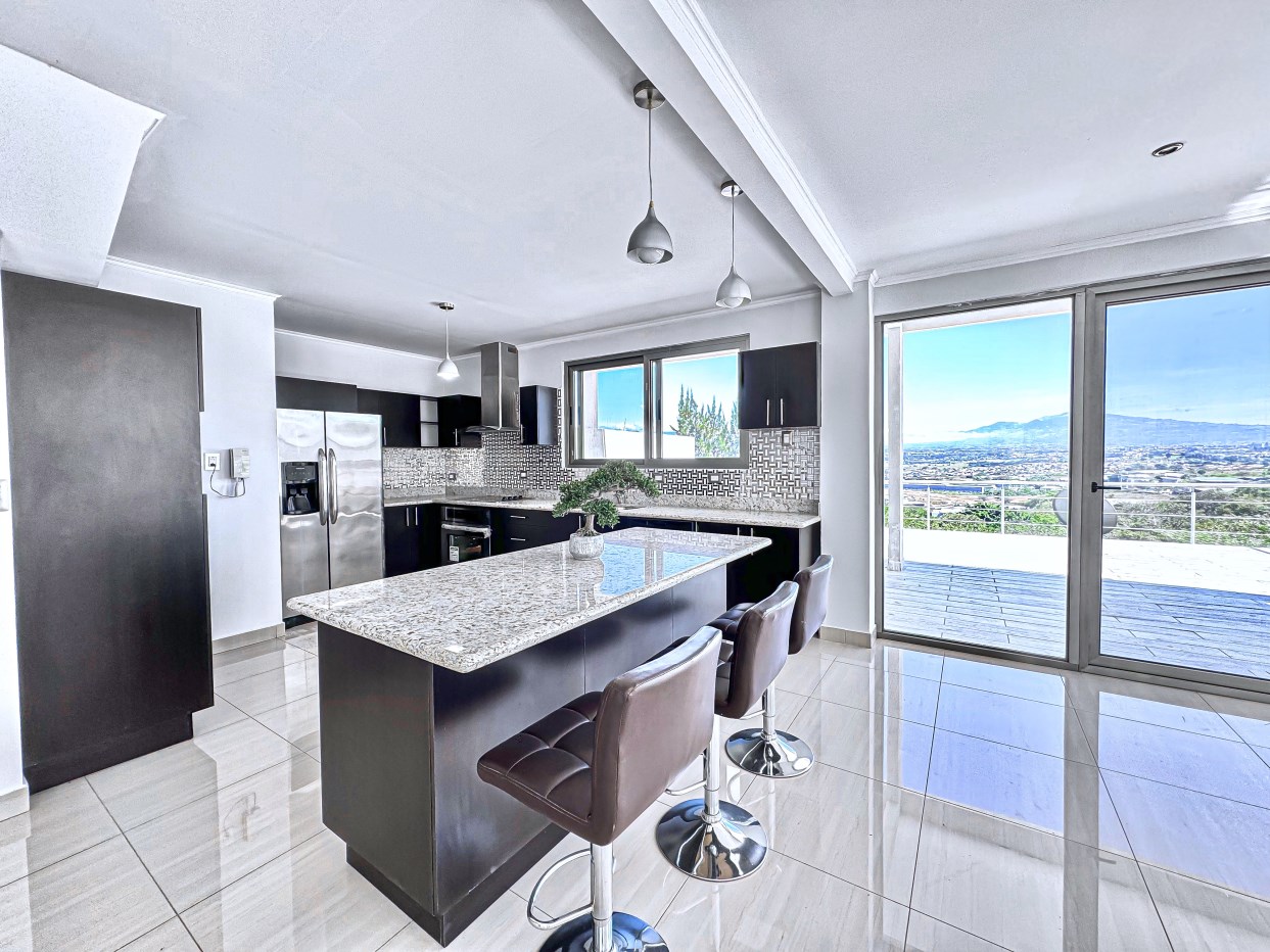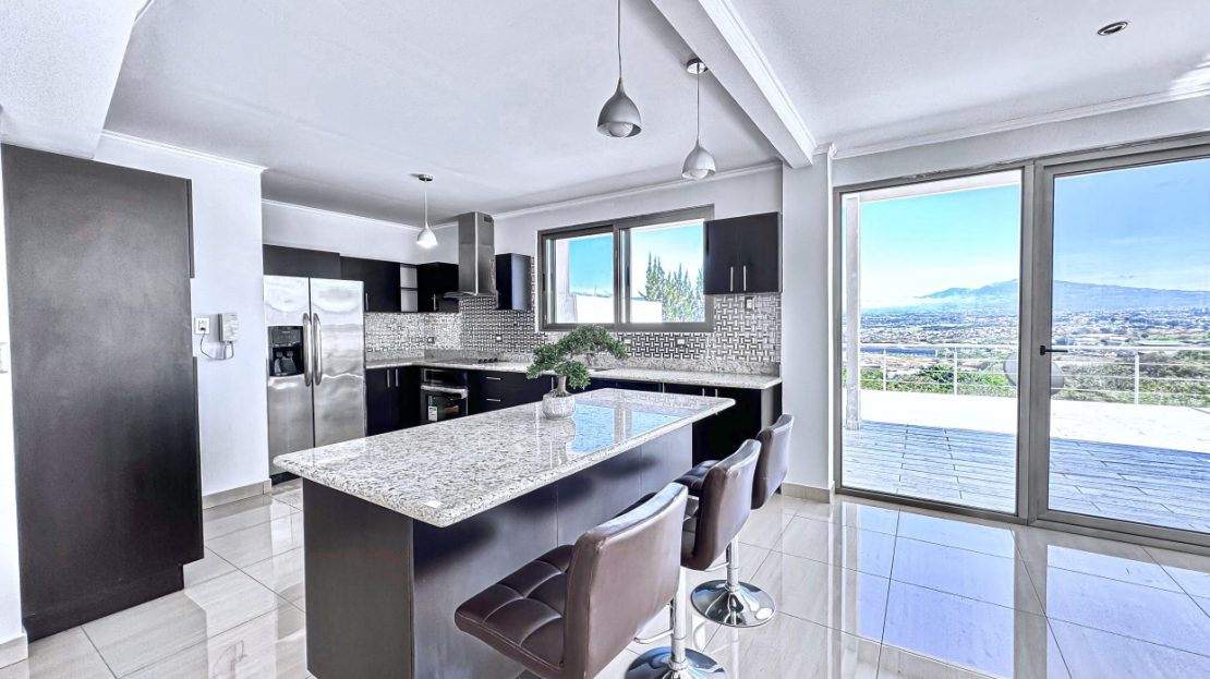 Welcome to Casa Hilltop mountainside home for sale in Escazu Costa Rica. The home’s location boasts captivating expansive views facing East, North Northeast and West. The views of the valley and mountains to the City of San Jose are breathtaking! Casa Hilltop is a three-level home, parking on the main level, with 5 bedrooms and 5.5 bathrooms nestled on the mountainside of Guachipelin, Escazu where the air is fresh and the breezes are cool.
