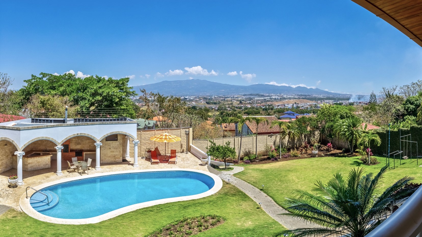 Casa Tuscan Hill Escazu home for sale is located in Loma Real, providing 24/7 security service. Loma Real is a FAMILY and PET FRIENDLY residential community with tree-lined roads, parks, amazing mountain and valley views. The parks offer multiple ranchos, play grounds, and soccer field. In addition, Loma Real is the closest residential community to Route 27, providing quick access compared to the residential communities in North Guachipelin. CasaTuscan Hill is only a few minutes from Costa Rica’s BEST golf courses, fine dining, shopping plazas and malls such as Multi Park, Avenida Escazu, Distrito 4, MultiPlaza Mall of Escazu, Itskatzu Plaza and private schools such as Blue Valley, Mount View, West College, Saint Mary, Lighthouse, Pan American and The British School to name a few. Lastly, Casa Tuscan Hill Escazu home for sale is conveniently located 30 minutes from the airport, 80 minutes from the beach or the Los Suenos Marriot offering resort, golf and sport fishing.