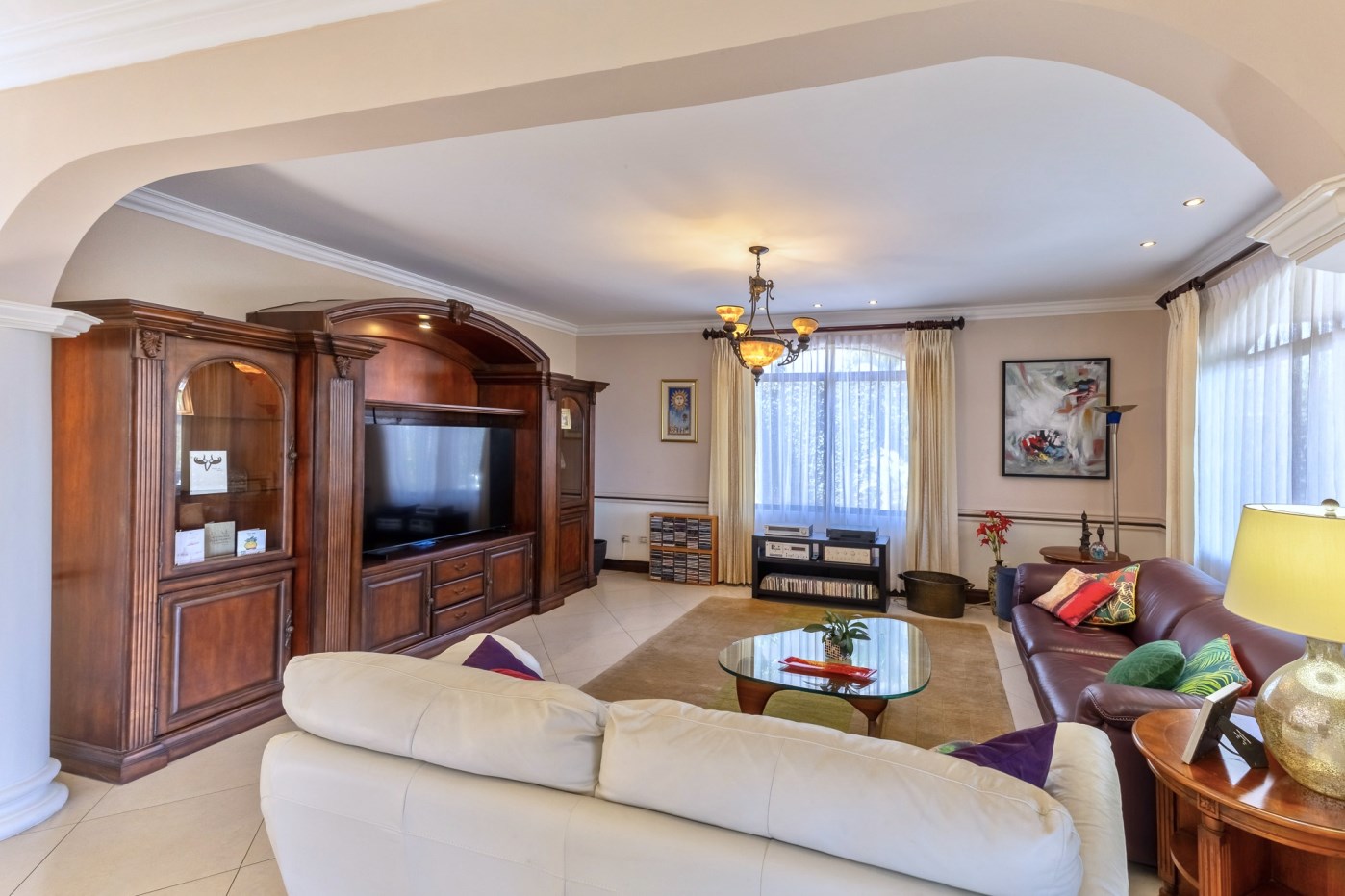 4 bedrooms and a large TV lounge room. One of the Secondary bedrooms boasts an en-suite full bathroom. The other two secondary bedrooms share an independent full bathroom.