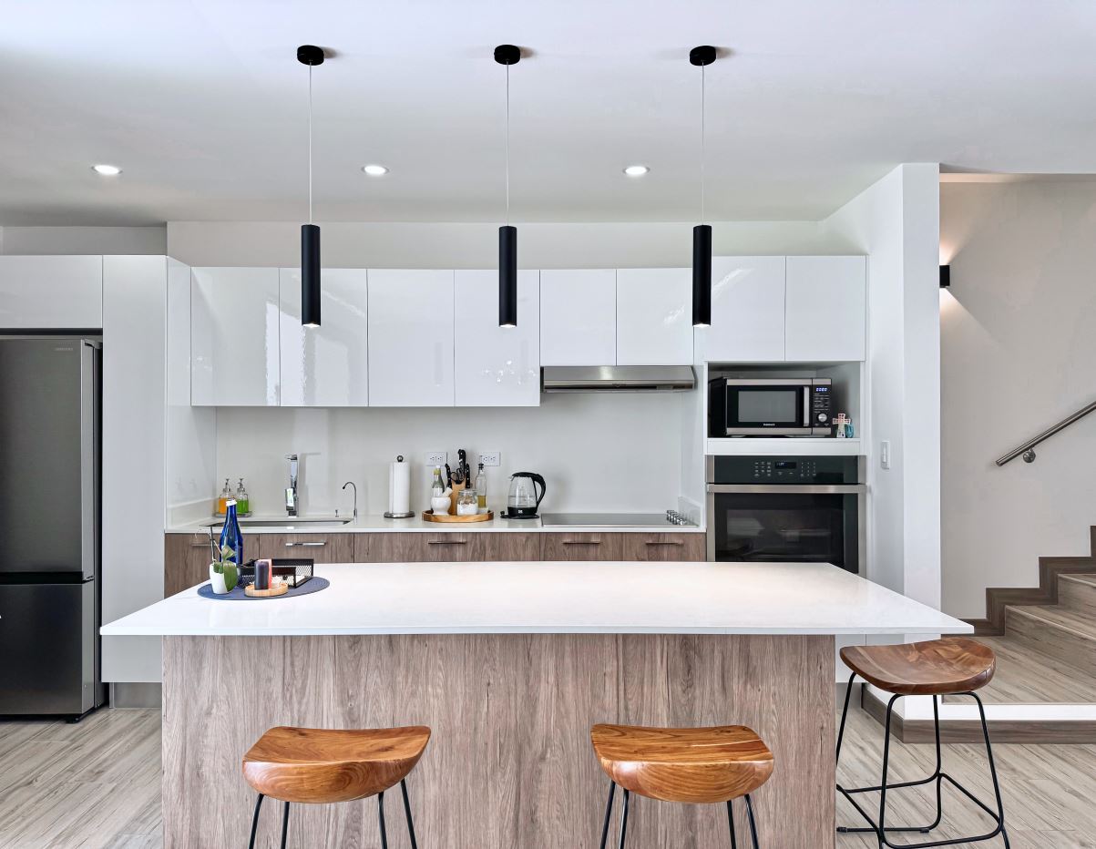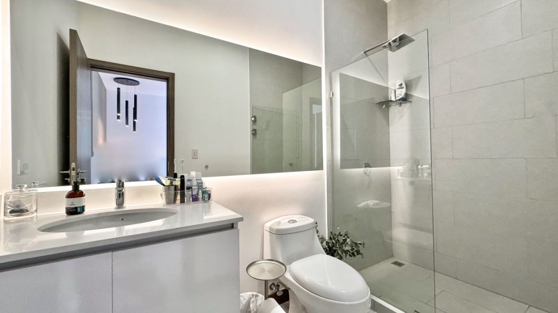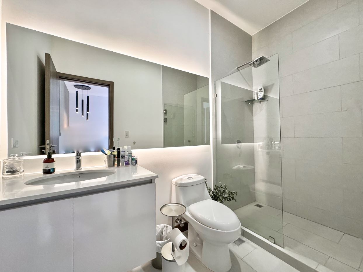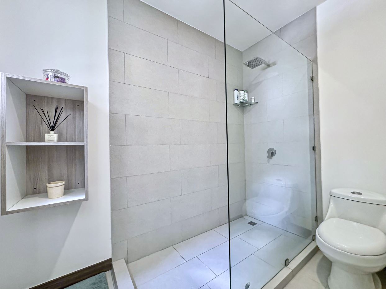 • Lots of Natural Light.• Contemporary Finishes.• Tempered Glass Shower Panels in the Bathrooms.• Quartz countertops.• Porcelanto Floors• Kitchen & Bathrooms boasting Italian cabinetry• Wood panel decor• Decorative lighting