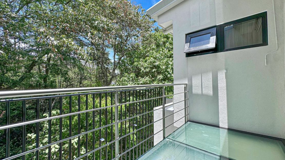 The second level boasts a TV lounge room, a wall unit and linen closet, 2 secondary bedrooms and a master bedroom. The master bedroom boasts a balcony with beautiful forest views, a walk-in closet and air-conditioning. The two secondary bedrooms boast air-conditioning, forest and mountain views and share an independent bathroom.