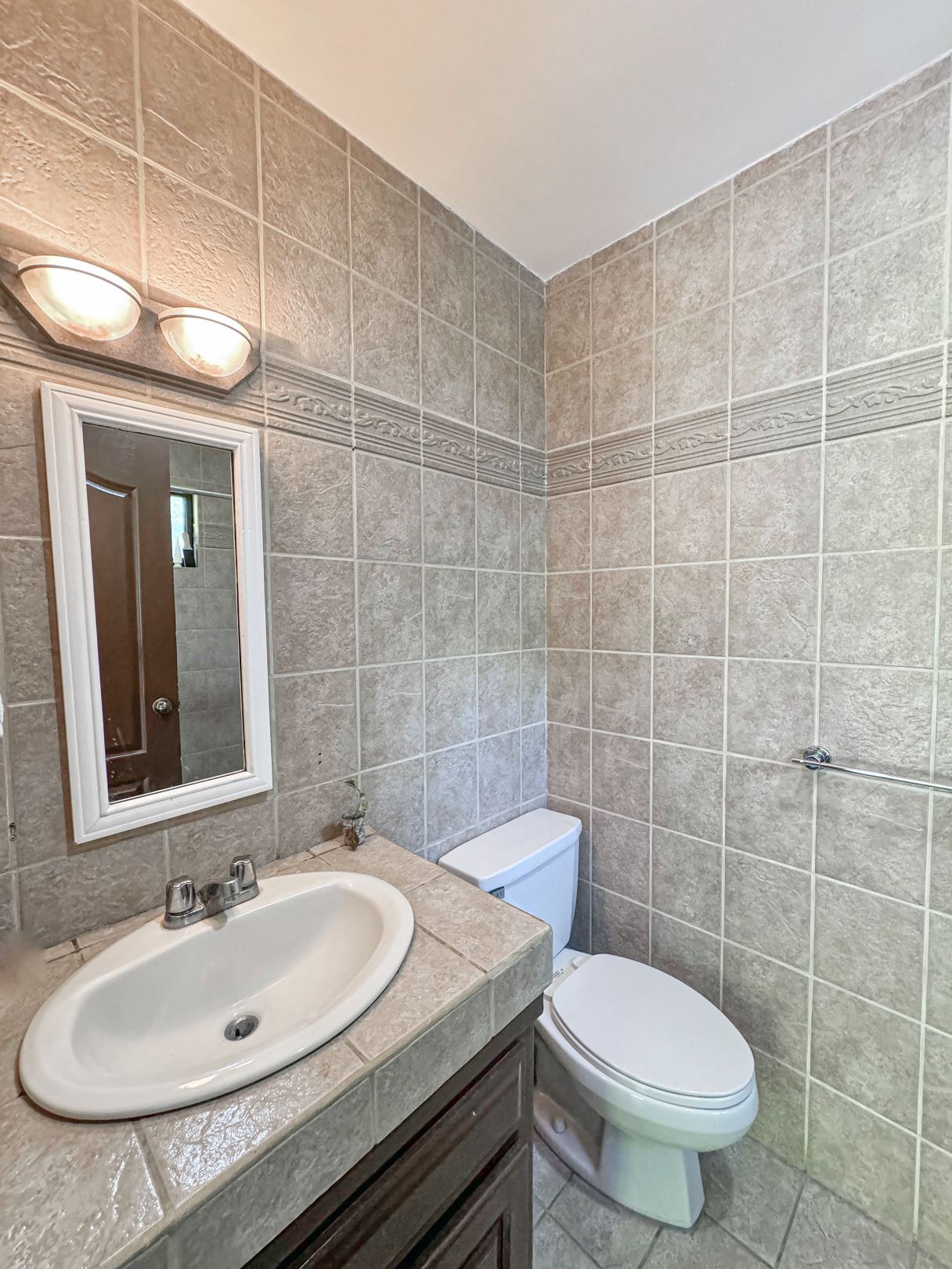 An open distribution design integrating the kitchen, dining, and living room. Lots of windows and glass sliding doors provide ample natural lighting. Glass sliding doors open to a patio and a small yard. There is plenty of room for everyone to enjoy themselves. A laundry room is adjacent to the kitchen. A half bathroom is near the entrance.