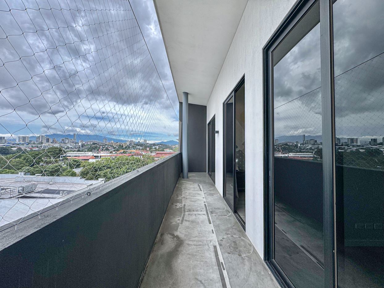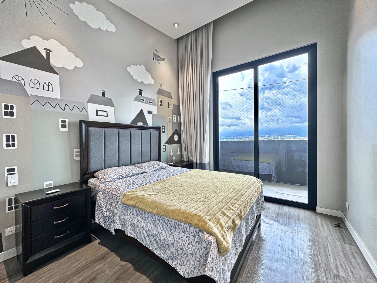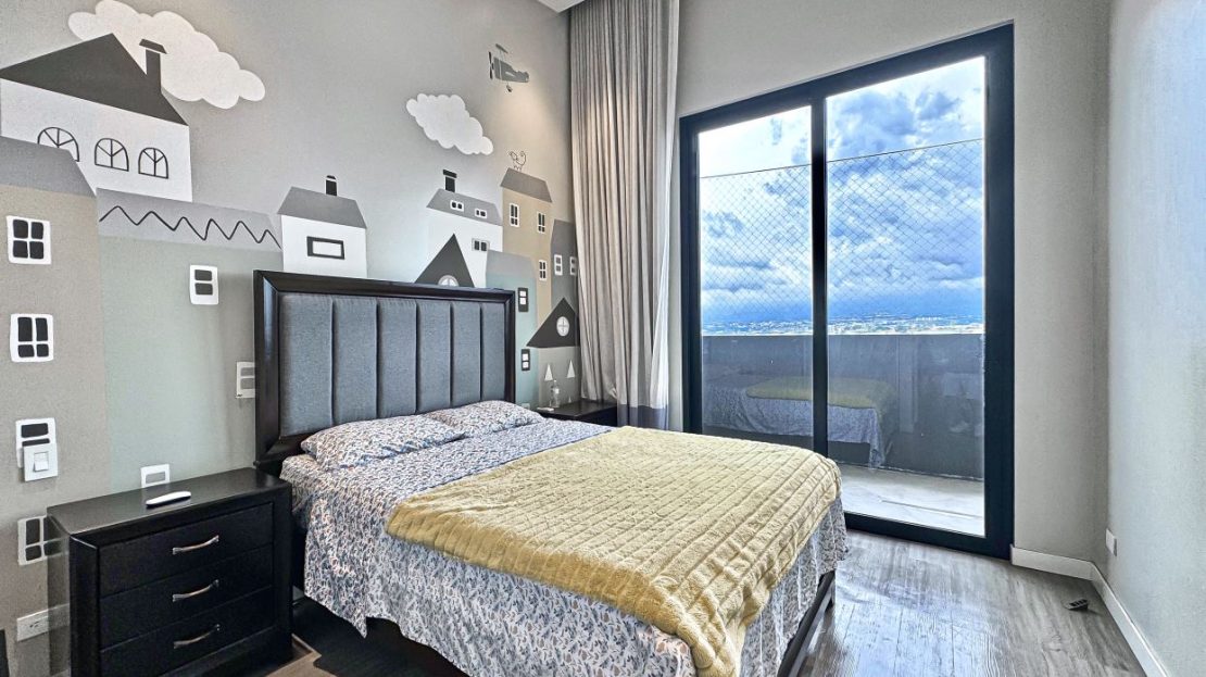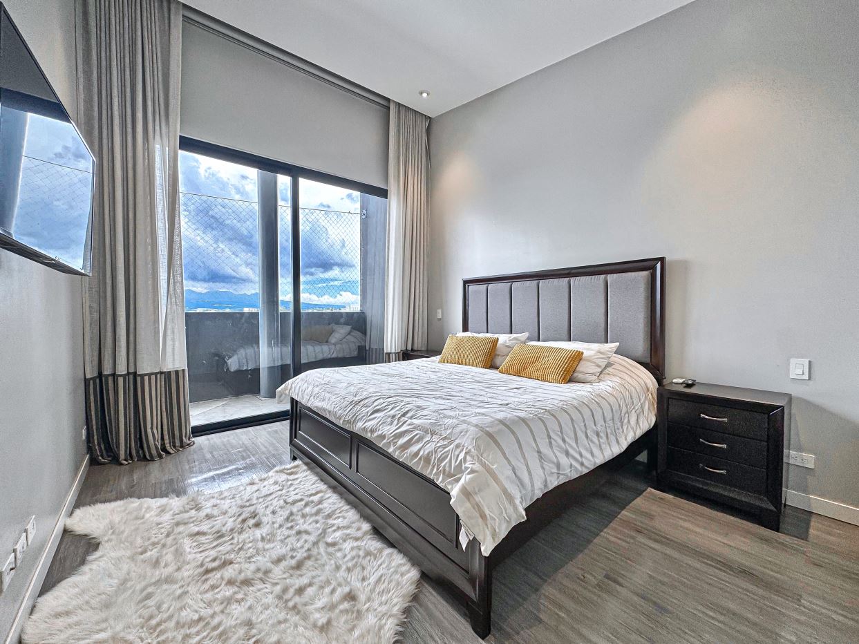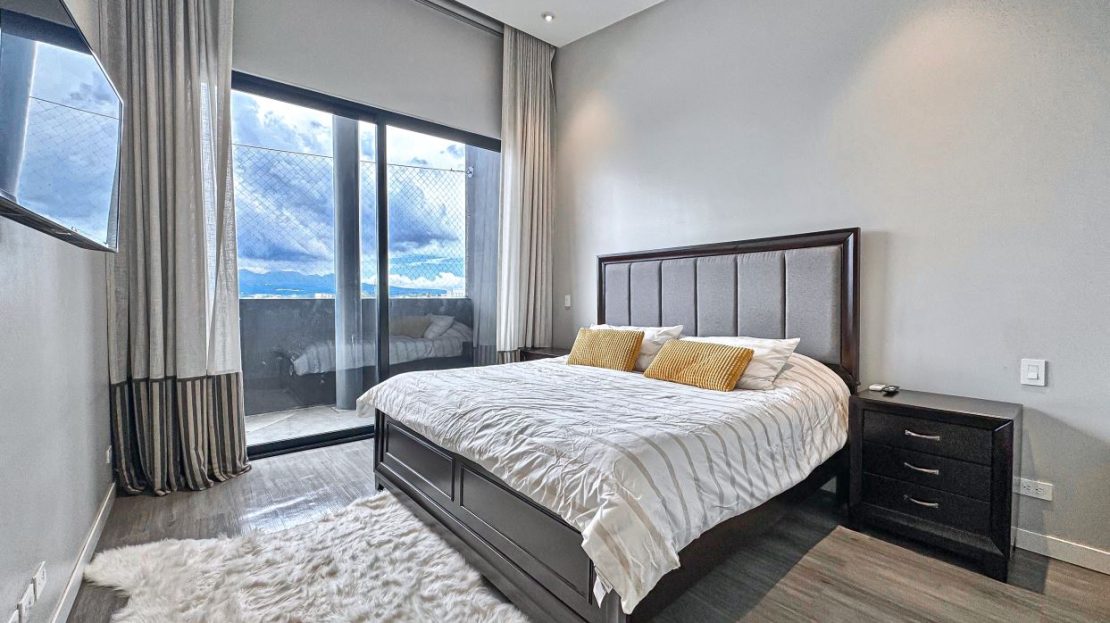 This penthouse offers a thoughtfully designed layout, separating social and private spaces, and making it ideal for entertaining, working from home, or unwinding in luxury. A staircase leads to the upper level seamlessly connecting a TV lounge, two secondary bedrooms, and a primary suite. Each bedroom opens onto a shared balcony with captivating views of San José and the Heredia mountains. The primary bedroom features an en-suite bathroom and a walk-in closet, while the secondary bedrooms share a well-appointed independent bathroom. Air conditioning is installed throughout the residence for year-round comfort.