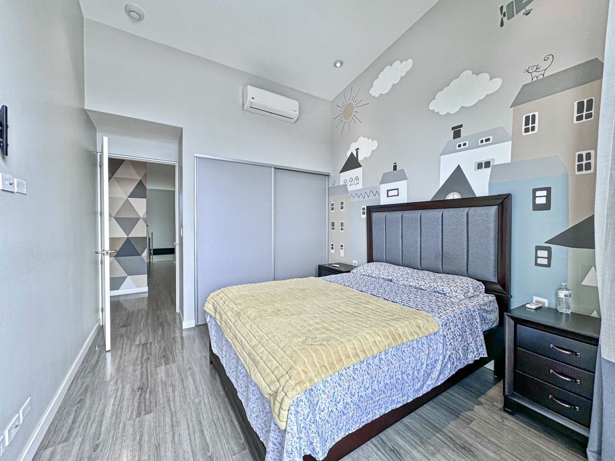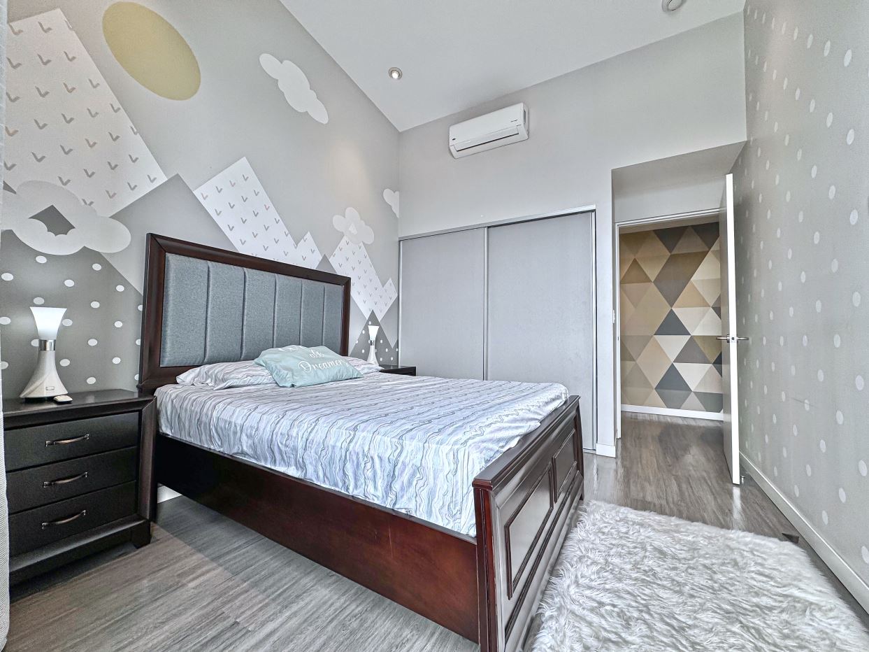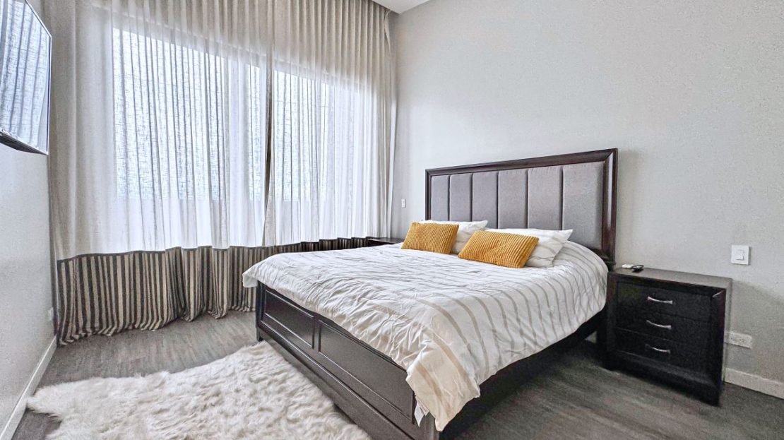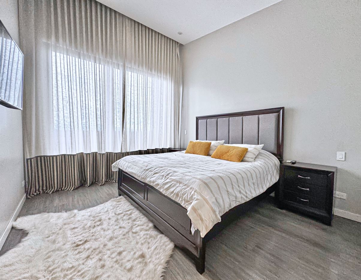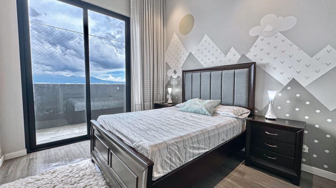 This penthouse offers a thoughtfully designed layout, separating social and private spaces, and making it ideal for entertaining, working from home, or unwinding in luxury. A staircase leads to the upper level seamlessly connecting a TV lounge, two secondary bedrooms, and a primary suite. Each bedroom opens onto a shared balcony with captivating views of San José and the Heredia mountains. The primary bedroom features an en-suite bathroom and a walk-in closet, while the secondary bedrooms share a well-appointed independent bathroom. Air conditioning is installed throughout the residence for year-round comfort.