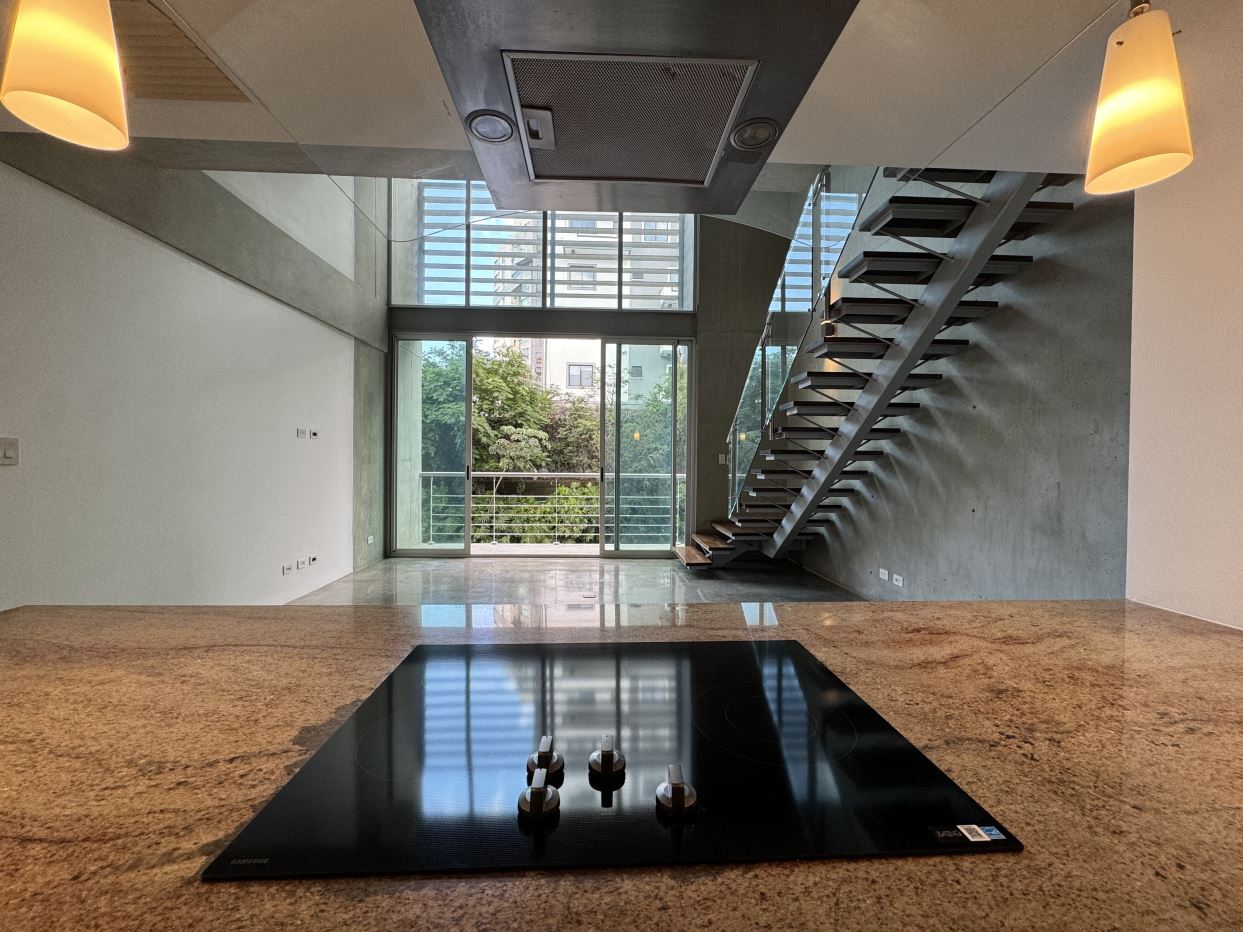 Welcome to Condo Garden Loft for sale in the iconic Avenida Escazu. The ultimate urban living in Escazu. Walk to all the town’s favorite stores, entertainment, and restaurants. Condo Garden Loft boasts floor to ceiling windows with mountain views towards the Cerros of Escazu. From the balcony, you can enjoy the views with your favorite drink! The residence is an open-concept floor plan integrating the kitchen, living and dining areas. The secondary bedroom is located on the first level, with access to an independent full bathroom. The primary bedroom is located on the second level in a loft-style layout, offering ample space, a walk-in closet, and an ensuite bathroom. Both bedrooms feature wood flooring, and a laundry room is conveniently located adjacent to the kitchen.