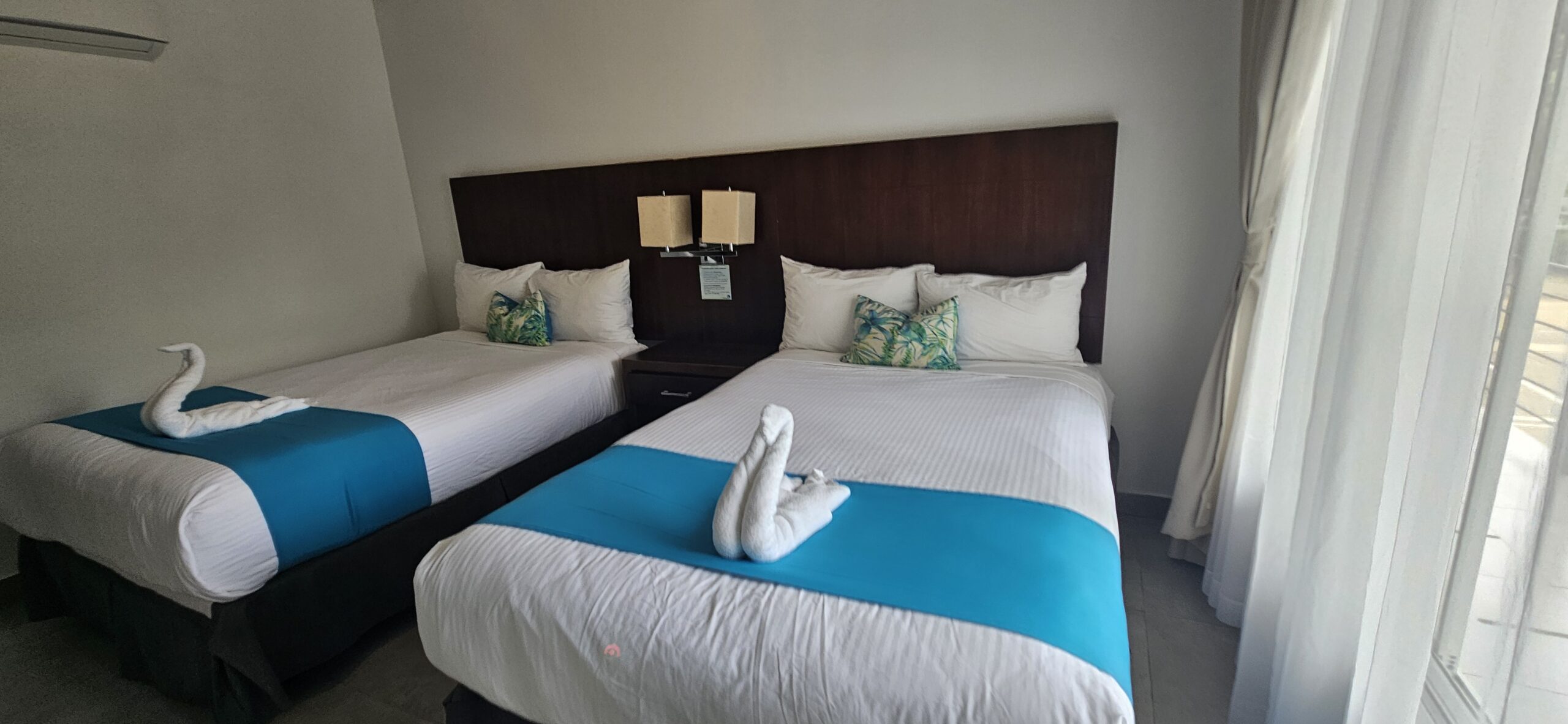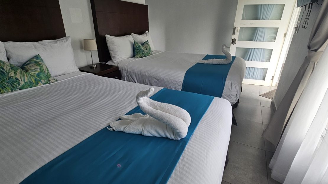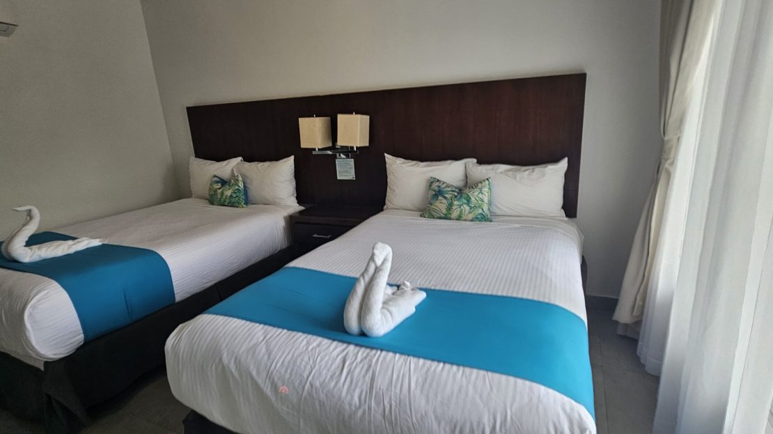 Guests are welcomed at the ground-floor reception, ensuring a smooth check-in process. The hotel boasts two laundry rooms with washers and dryers to efficiently handle the hotel’s needs. The stunning pool area includes a kid’s pool and an adult pool with built-in stools for enjoying drinks while relaxing. The pool area also features two outdoor showers and a bathroom.