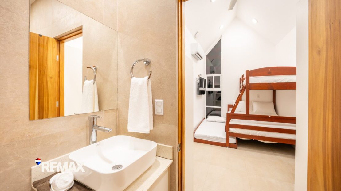 The gourmet kitchen, complete with premium appliances and sleek countertops, opens to a spacious dining and living area ideal for entertaining. Step outside to your private pool deck and soak in panoramic jungle and ocean breeze, perfect for sunset cocktails or serene mornings surrounded by birdsong. Bedrooms are generously sized, offering comfort and privacy, while the master suite features a spa-like bath and direct terrace access.