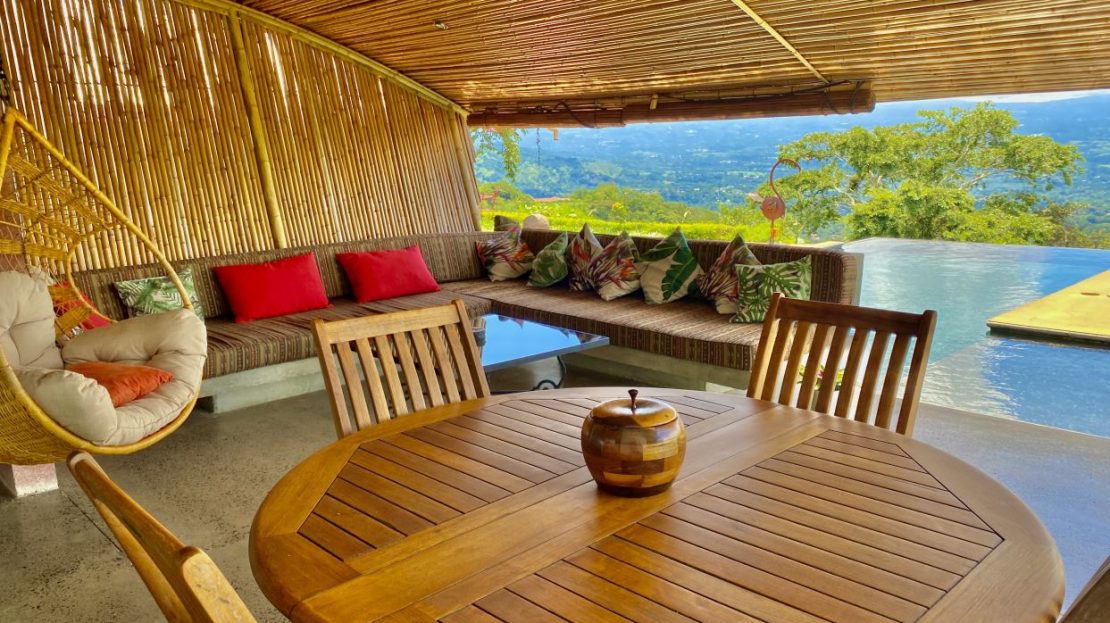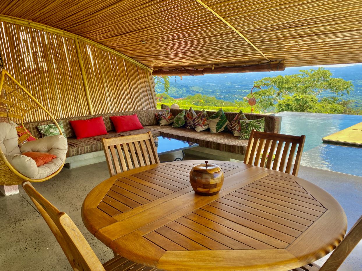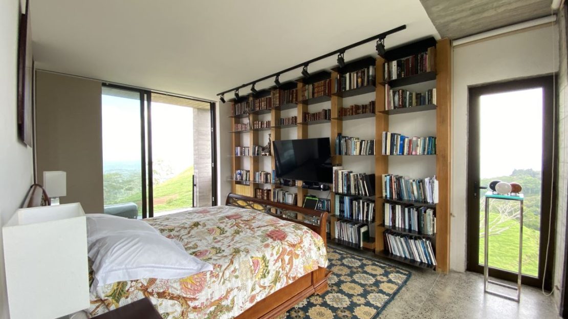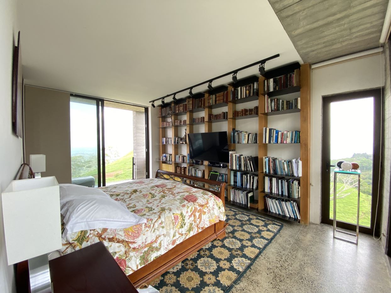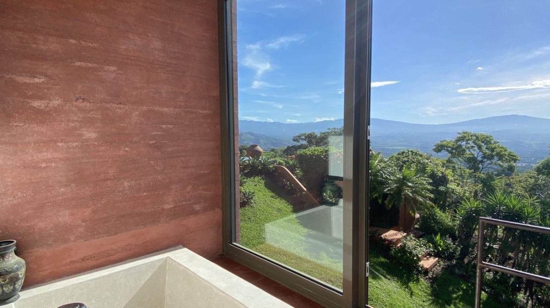 The primary residence features an open floor plan with views in almost any direction with sights of the entire capital of San Jose and even farther out views of the area mountains and volcanoes. The city lights at night are downright breathtaking. In the foreground is the small town of Atenas that is just minutes from this tallest point found so close to town. The formal entry leads to a large chef quality kitchen with clean cutting edge designs with quartz countertops, modern stainless steel appliances and high-end modern cabinetry throughout. There is a formal dining and living areas with sleek designs throughout with a drop-down movie projector room and another area that leads out to an inviting balcony area and a large outdoor patio with a mix of modern and tropical motif with bamboo rod ceilings. This area leads to the stunning large heated infinity-style pool and deck areas. All areas inside and out the home showcase ambient lighting throughout.
