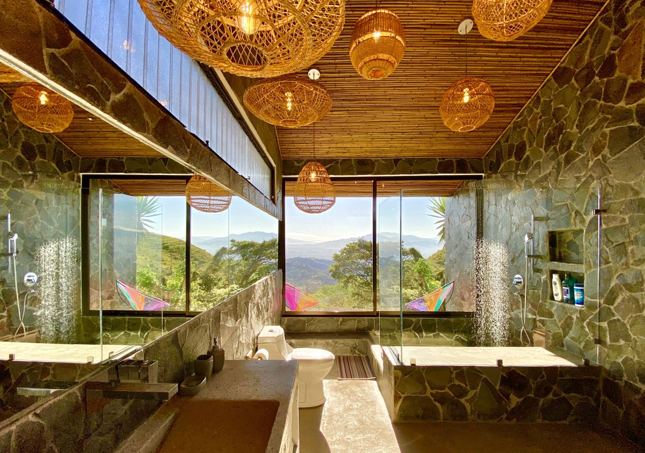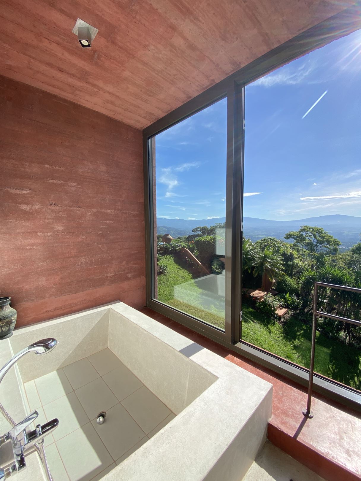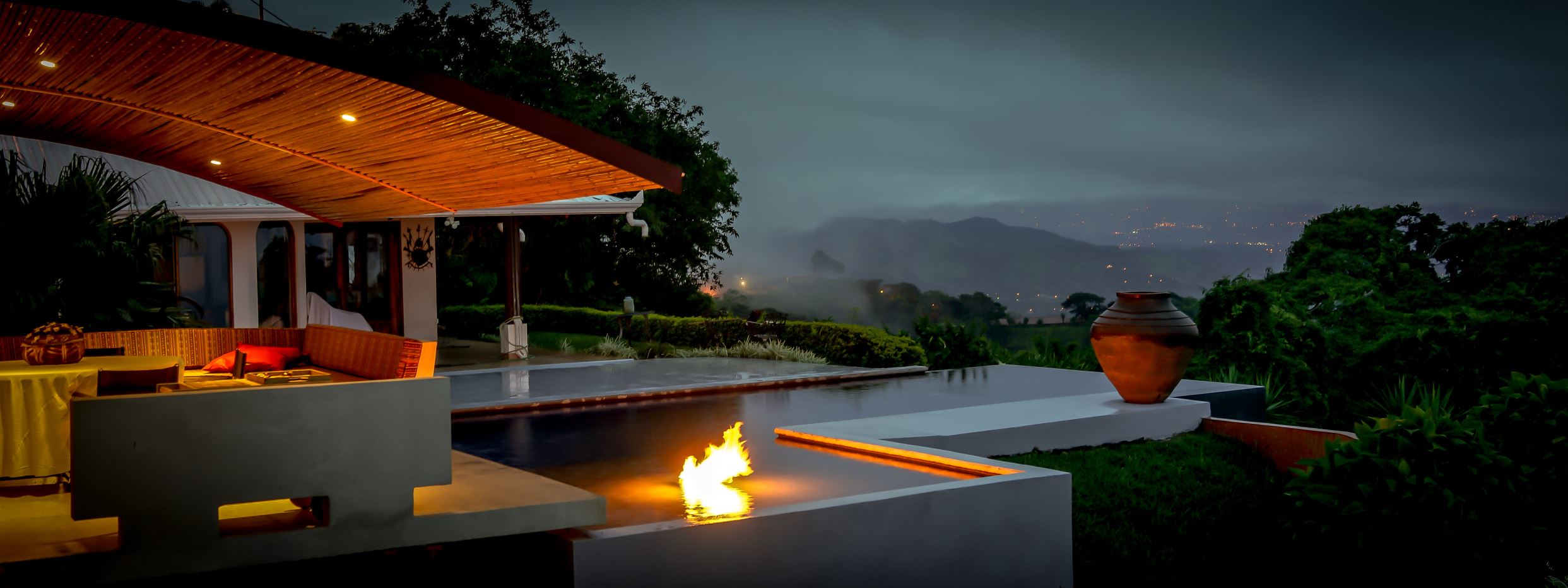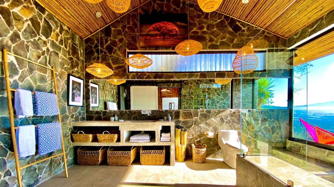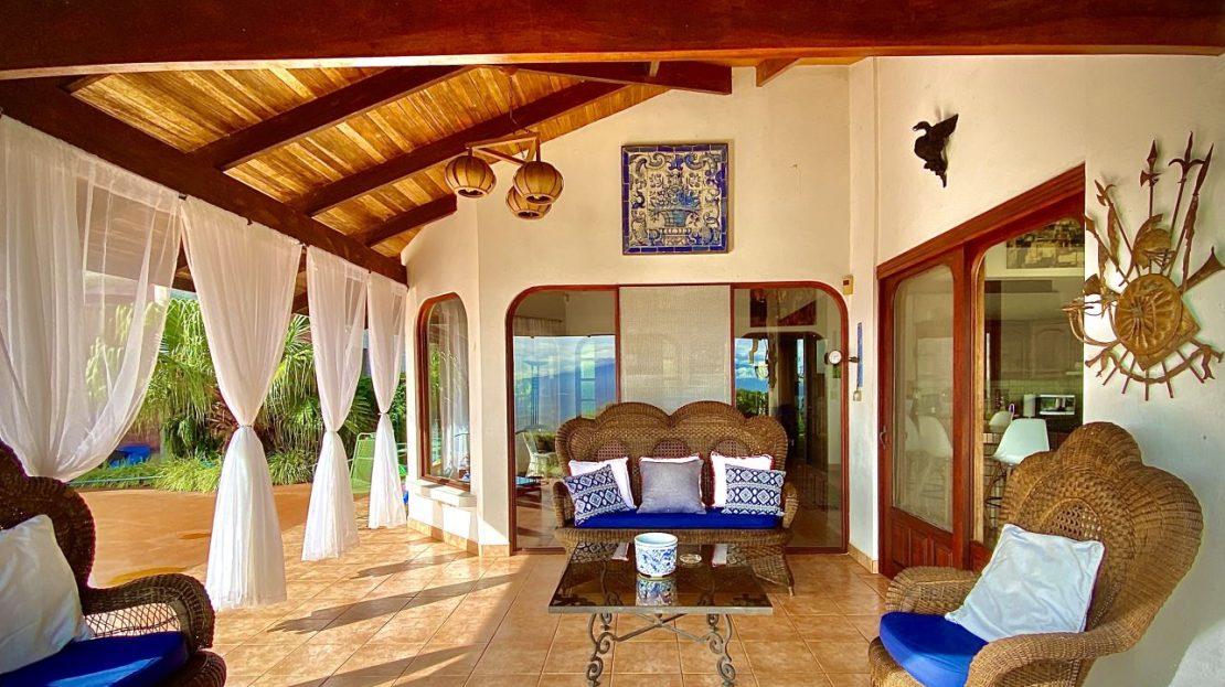 The primary residence features an open floor plan with views in almost any direction with sights of the entire capital of San Jose and even farther out views of the area mountains and volcanoes. The city lights at night are downright breathtaking. In the foreground is the small town of Atenas that is just minutes from this tallest point found so close to town. The formal entry leads to a large chef quality kitchen with clean cutting edge designs with quartz countertops, modern stainless steel appliances and high-end modern cabinetry throughout. There is a formal dining and living areas with sleek designs throughout with a drop-down movie projector room and another area that leads out to an inviting balcony area and a large outdoor patio with a mix of modern and tropical motif with bamboo rod ceilings. This area leads to the stunning large heated infinity-style pool and deck areas. All areas inside and out the home showcase ambient lighting throughout.