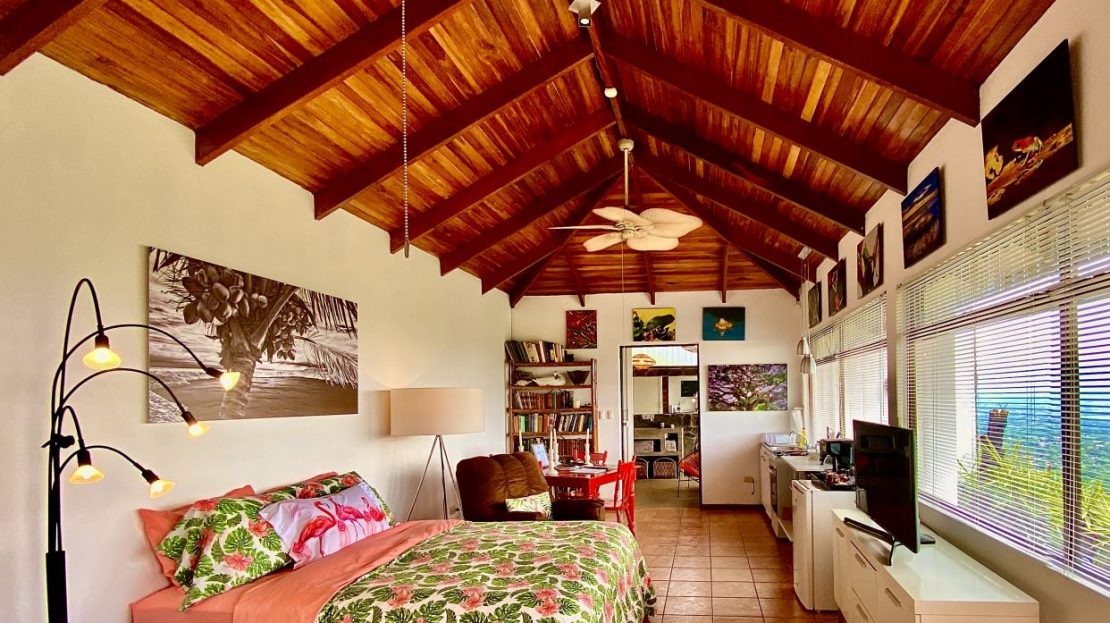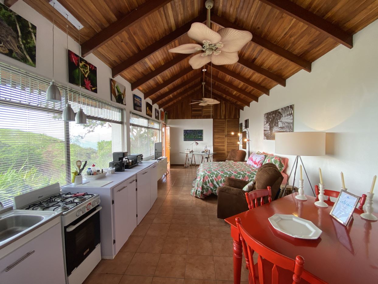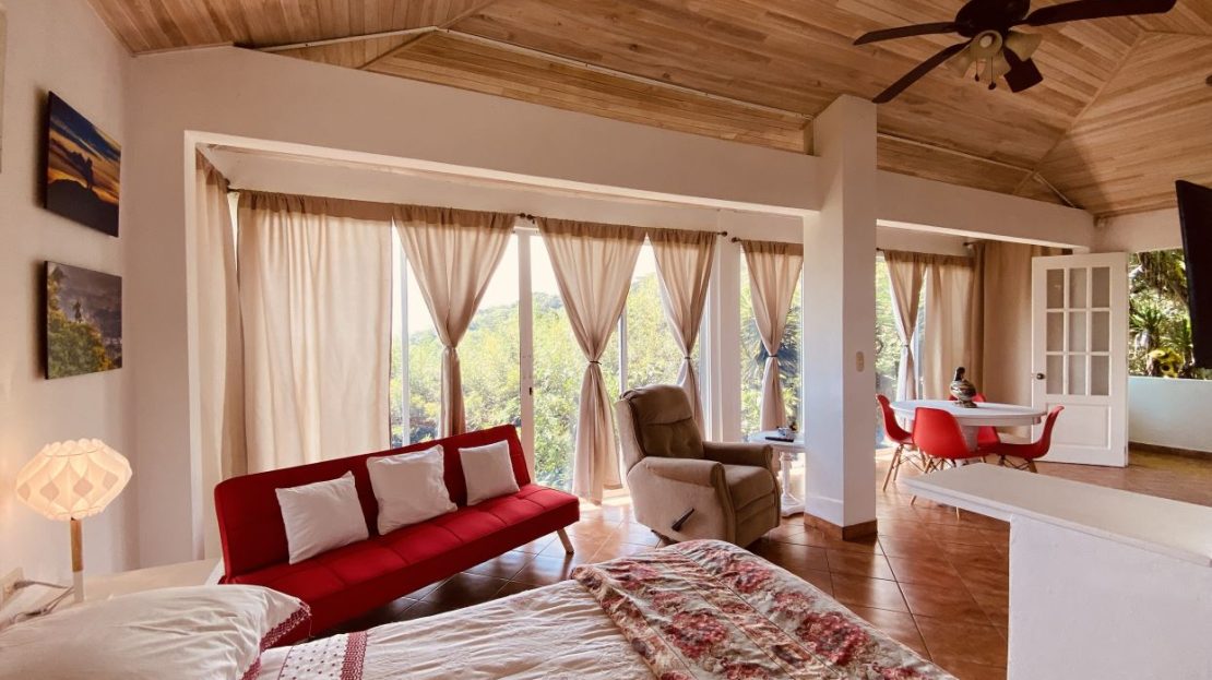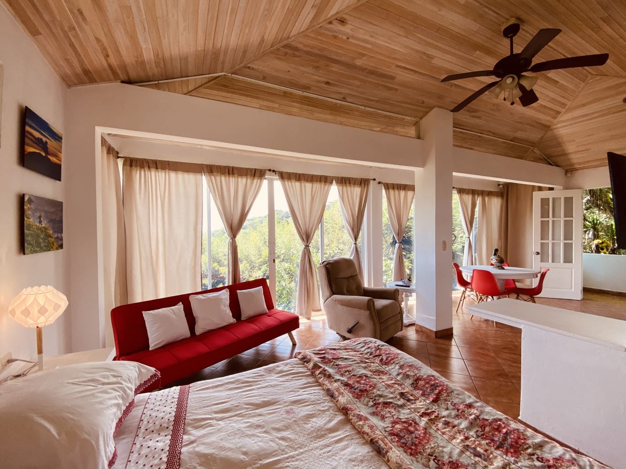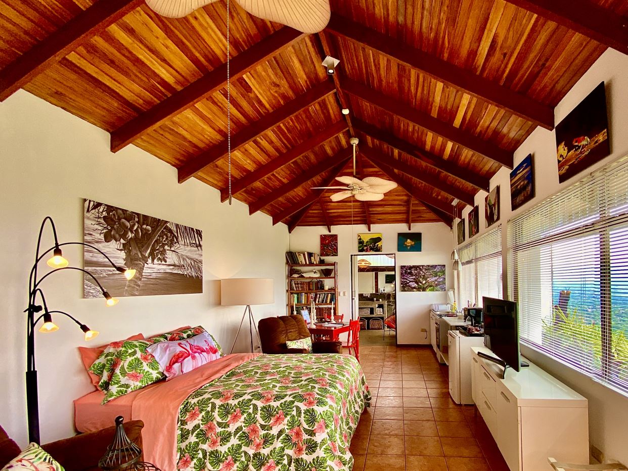 Detrás de esta casa hay un amplio estudio privado adicional para invitados con acabados eclécticos y un área de suite de baño de estilo moderno. Estas casas también cuentan con excelentes vistas del Valle Central. Hacia la entrada de la propiedad se encuentra la casita adicional de un dormitorio y un baño, también decorada de manera elaborada y con buenos acabados en todas partes. Ideal para una casa adicional para invitados o cuidadores.