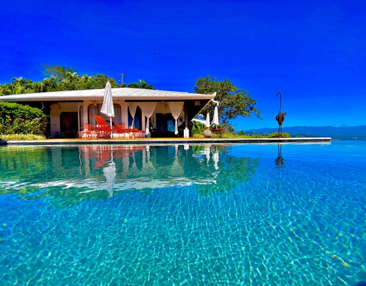 Esta casa ultramoderna única en su tipo se está utilizando actualmente como residencia principal, las 3 casas de huéspedes adicionales de estilo tropical son casas de alquiler vacacional exitosas con una operación de ingresos por alquiler sólidamente probada que genera un ingreso anual significativo. Tienen altas calificaciones en los sitios de alquiler vacacional con una excelente historia de siete años con alojamiento de primera clase y críticas altas constantes.