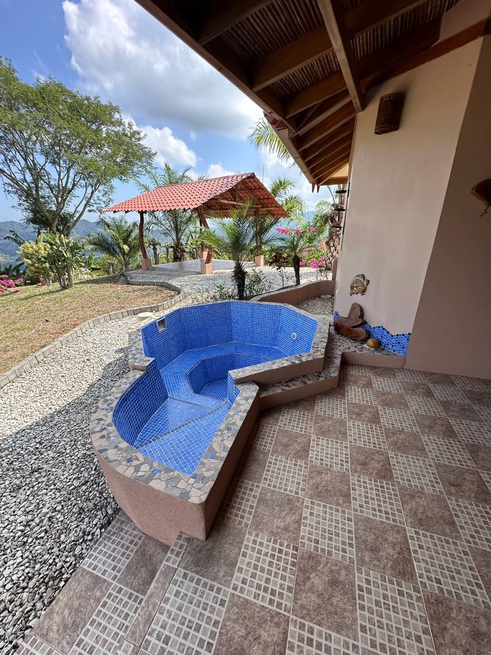 Located in a small village in Guanacaste, The Eagle’s Nest offers a true haven of peace in the heart of Costa Rican nature. The main house, constructed in the French style with 100 square meters and a tiled roof, is perched on a one-hectare platform, providing breathtaking 360-degree views of the Gulf of Nicoya and the surrounding mountains.