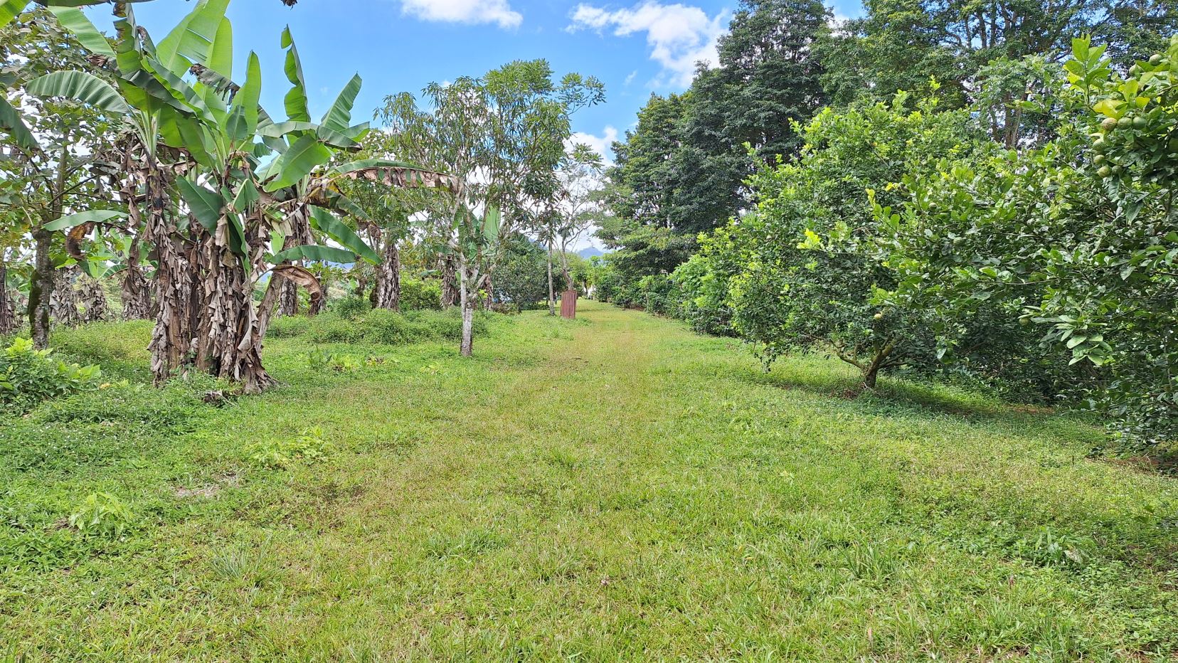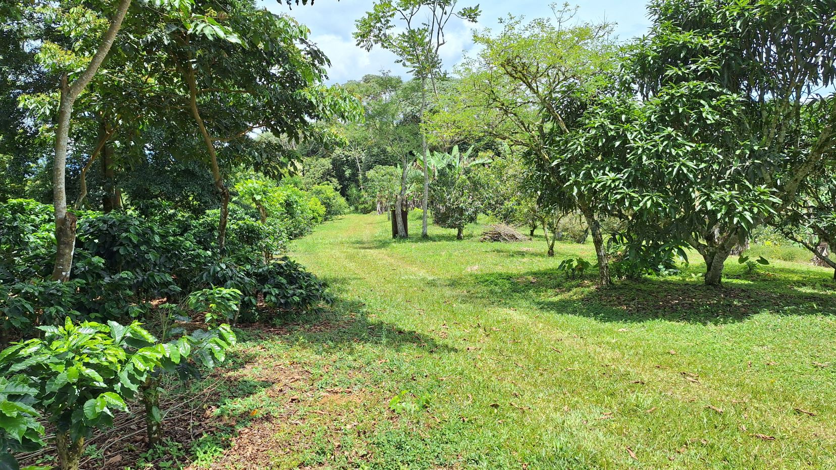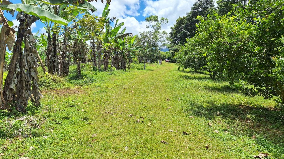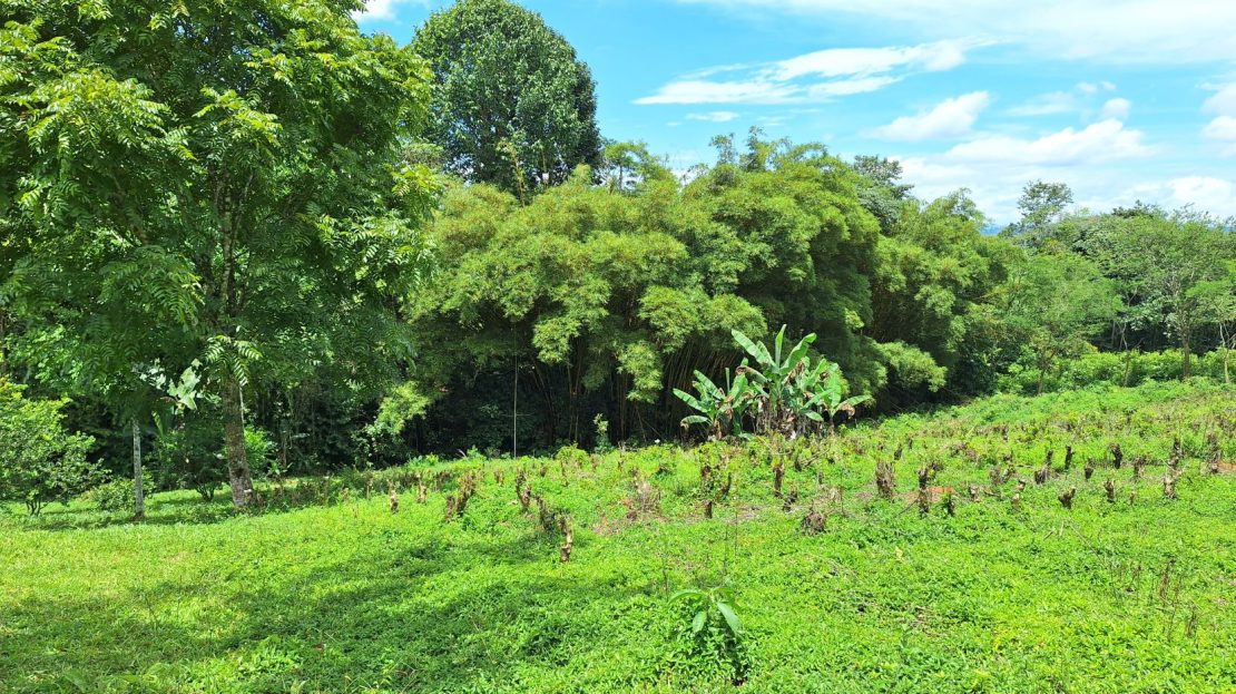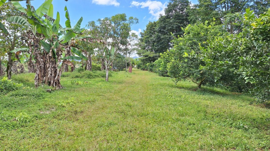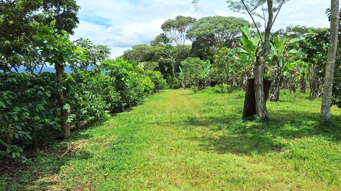 La finca en venta está bordeada por dos quebradas con agua cristalina todo el año, aportando frescura y valor a la tierra. Además, cuenta con una diversidad de árboles cítricos y frutales, cultivos orgánicos, plantación de café y una pequeña montaña con senderos naturales, ideal para caminatas y ecoturismo.
