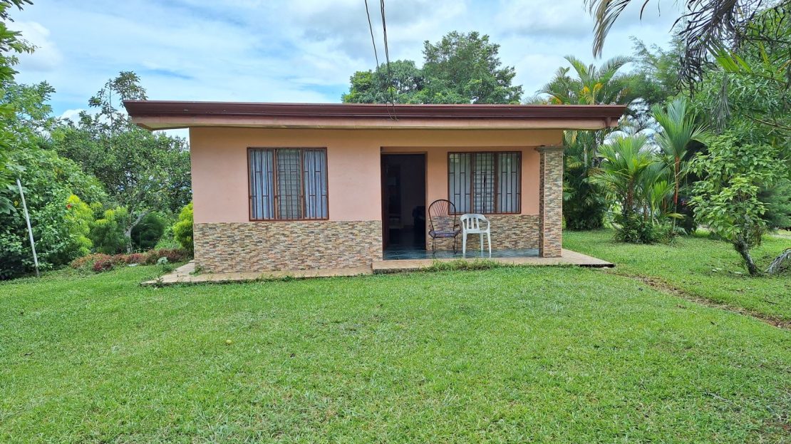 Casa principal: 115 m² en construcción de concreto, con 3 dormitorios, 1 baño, amplia sala, cocina, cuarto de pilas, corredor y cochera para 2 vehículos.