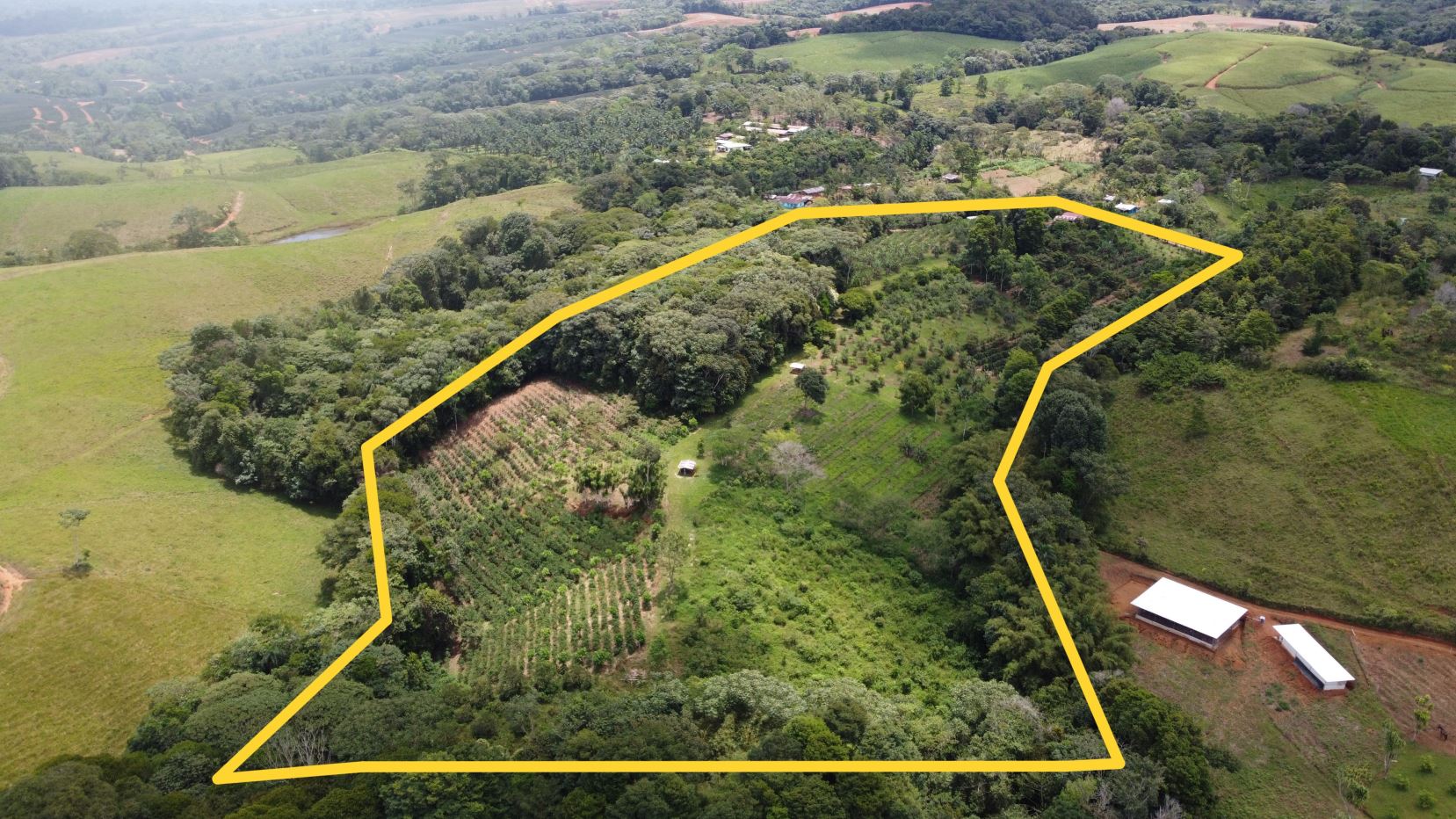 The farm for sale is bordered by two streams with crystal-clear water year-round, adding freshness and value to the land. It also features a wide variety of citrus and fruit trees, organic crops, coffee plantation, and a small mountain with natural trails, ideal for hiking and ecotourism.