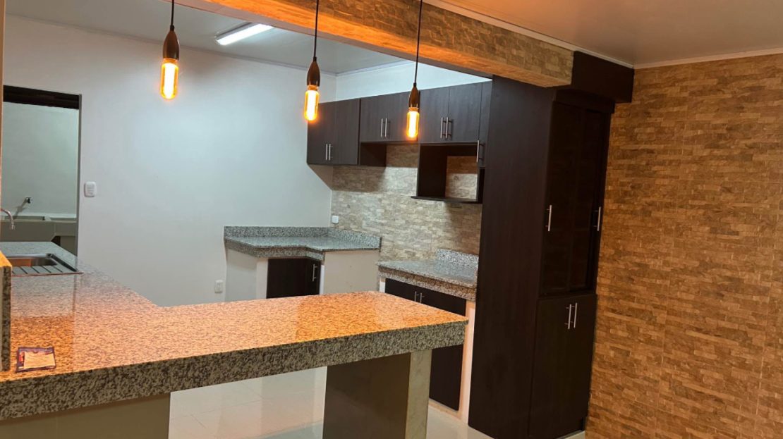 • Áreas sociales: Amplia sala y comedor con mueble aéreo y mostrador de granito.
