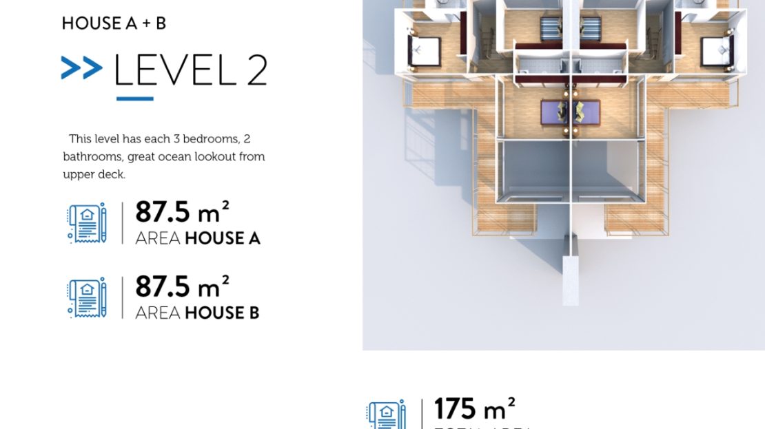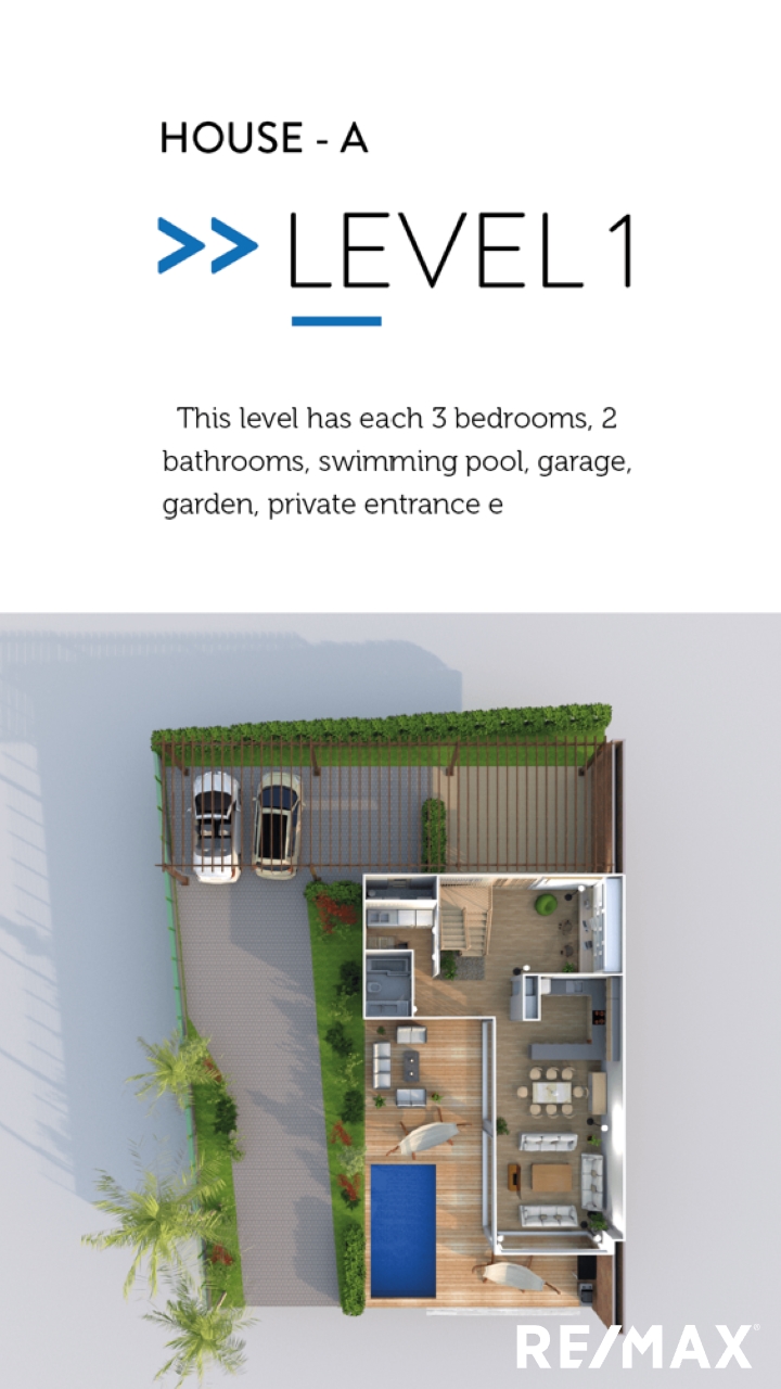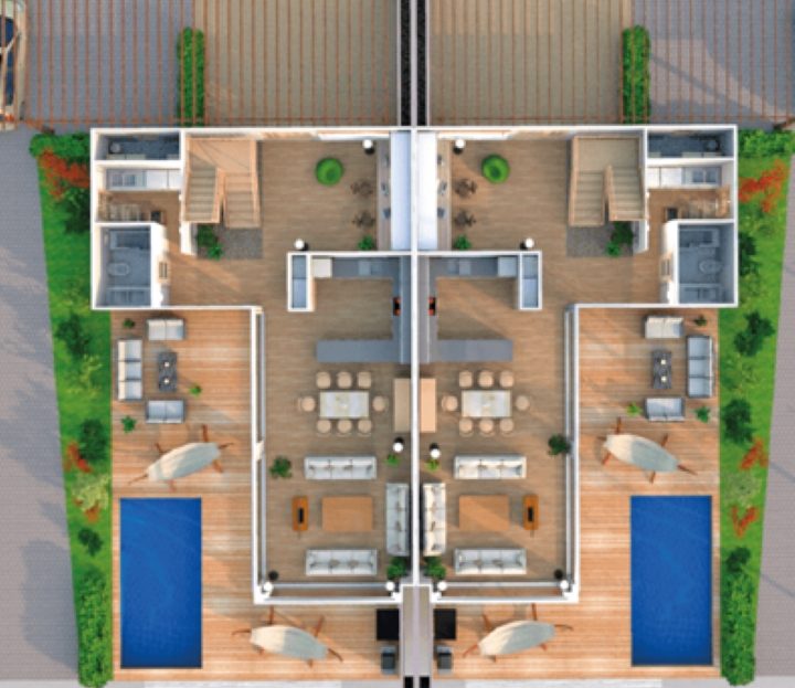 Pre-construction project featuring two luxurious, contemporary 3-bedroom homes, each with a private pool
