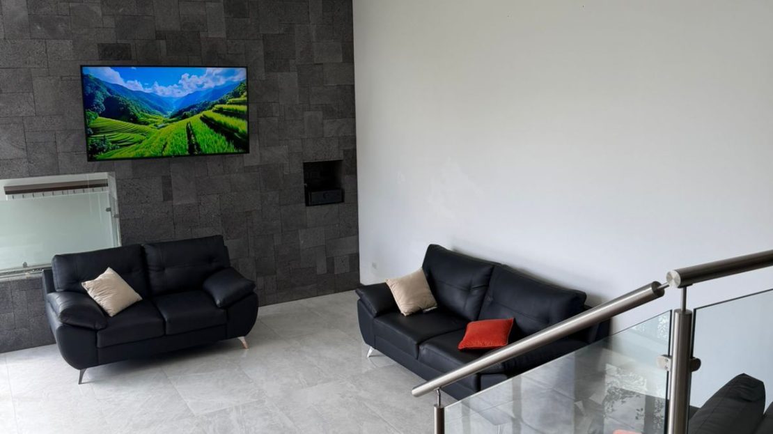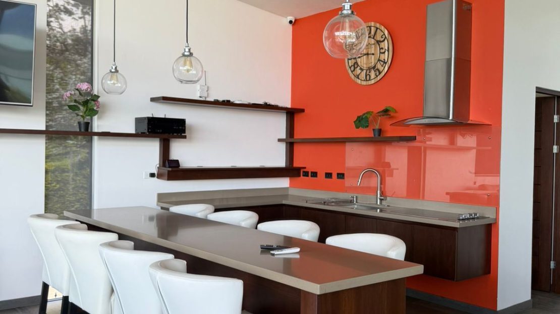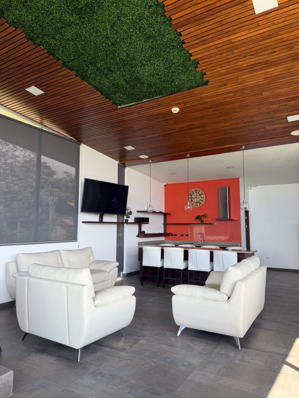 Área social y de entretenimiento en el último nivel, que incluye: