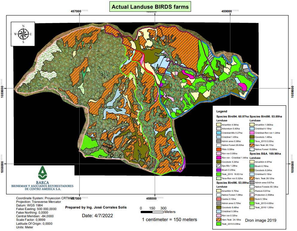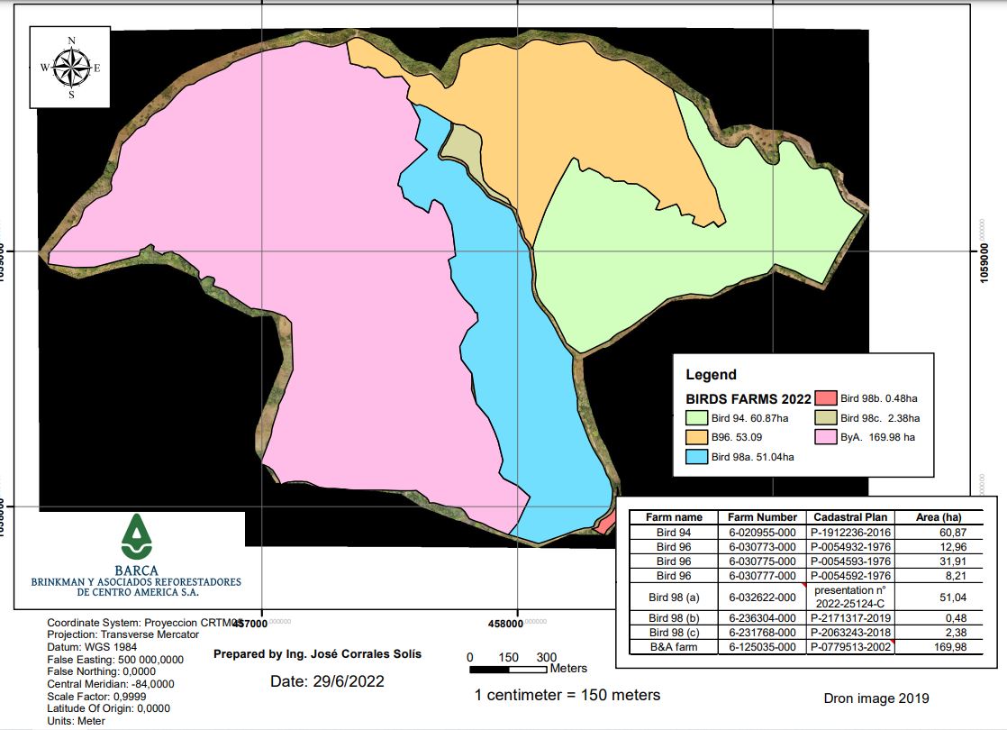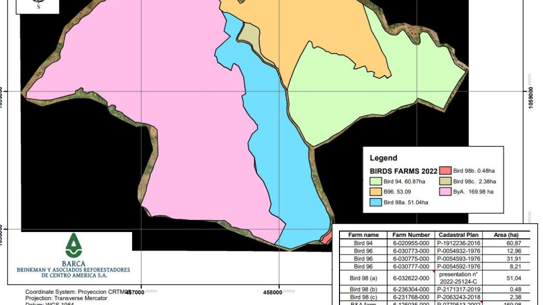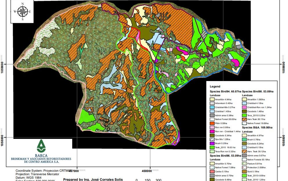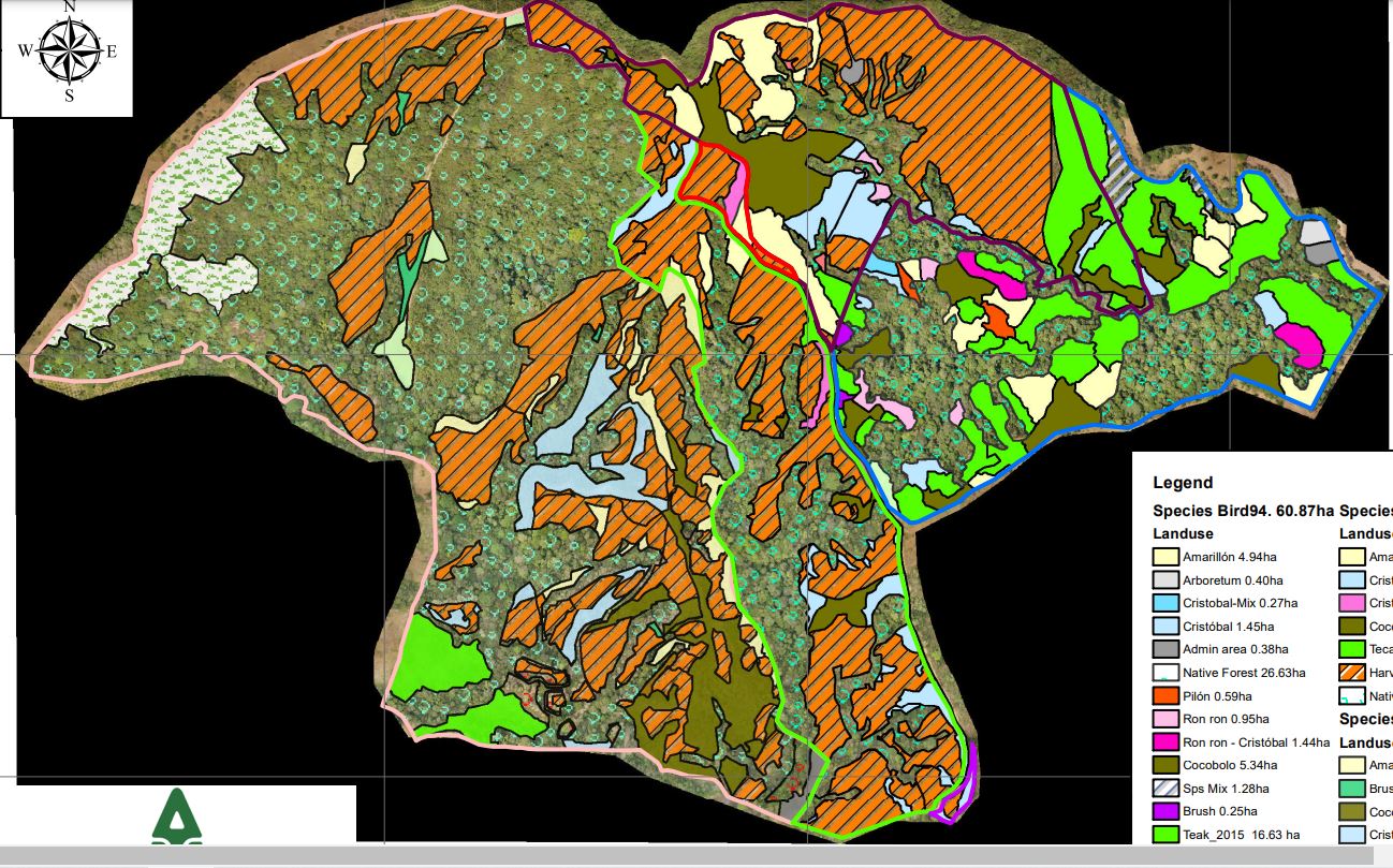 This is a showcase project cited by the FAO-MINAE, 2016 as an example of sustainable forest restoration projects and is a combination of native forest protection, native species plantations, and high-quality teak, creating a unique eco-plantation that creates habitat at the same time as financial returns. A unique set of adjacent farms comprised of 339 ha of pristine land of which 178 ha were planted with about 90 ha in teak and around 88 ha in native hardwood species.