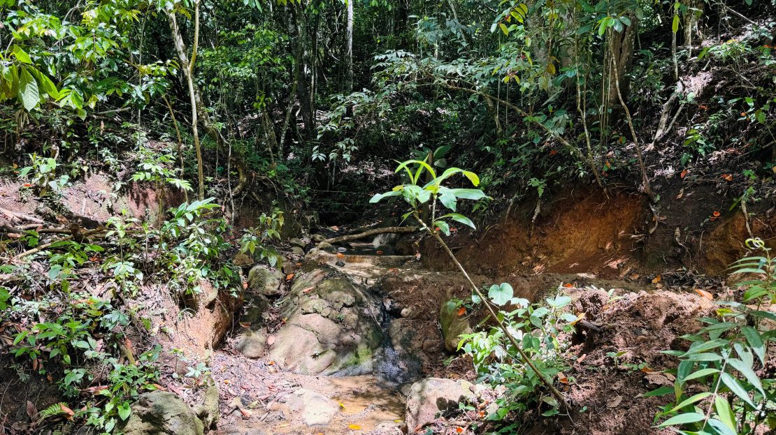 Natural Water Source: A pristine stream flows through the property, surrounded by a lush forest, creating a peaceful and picturesque environment.