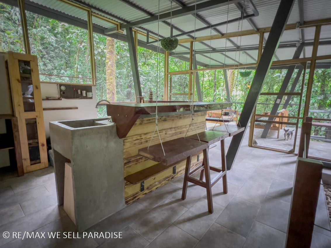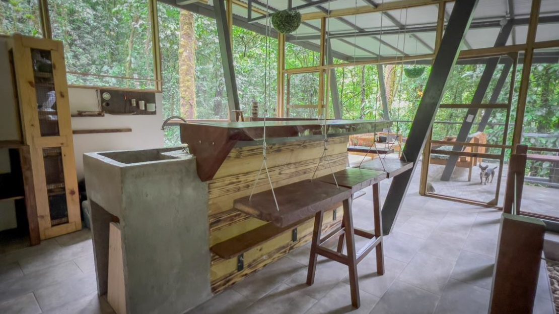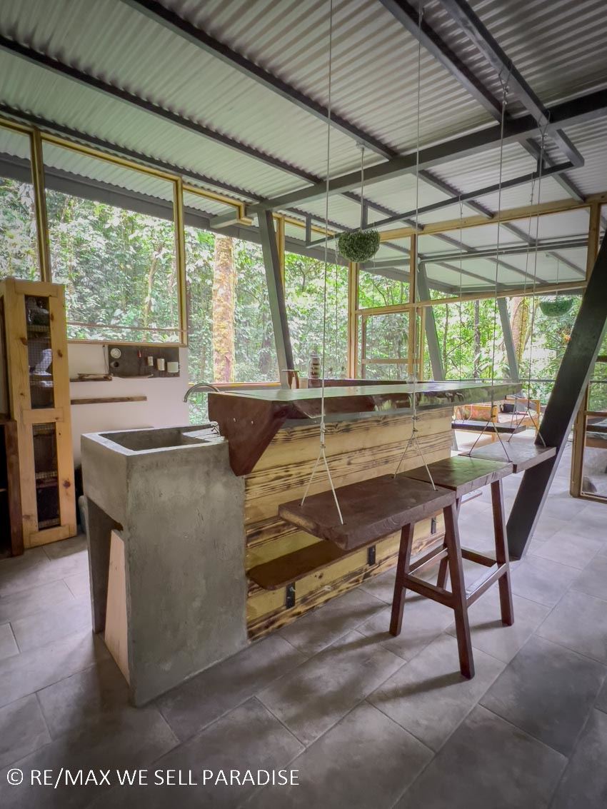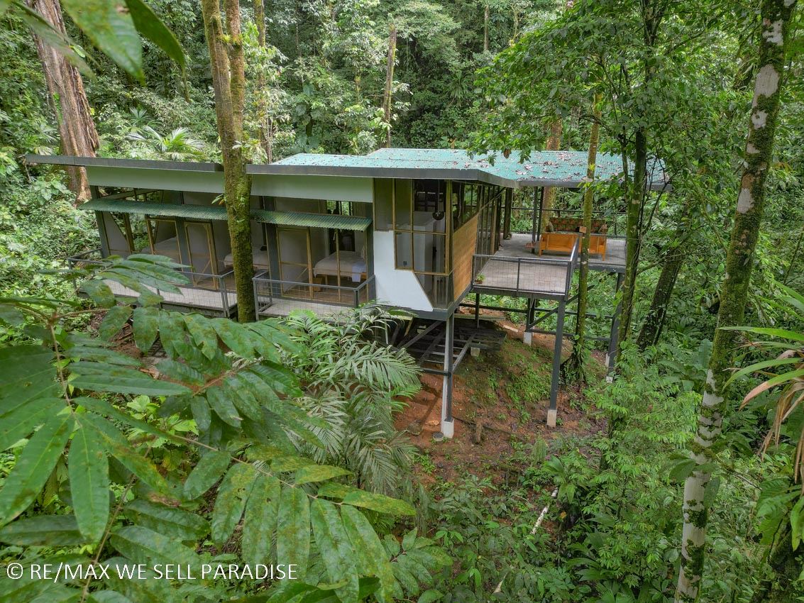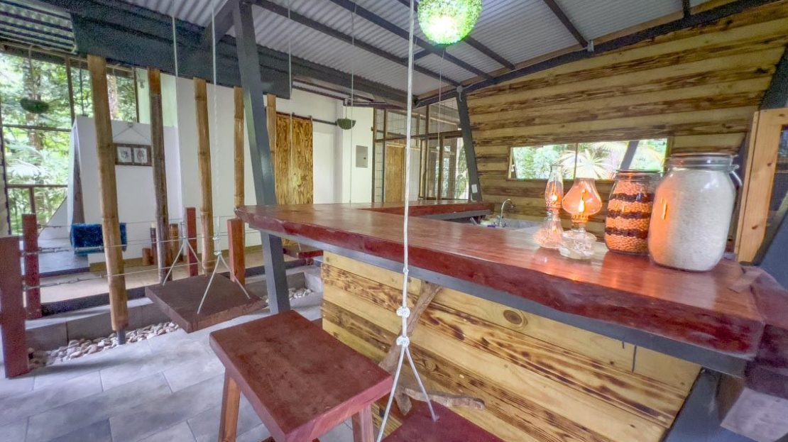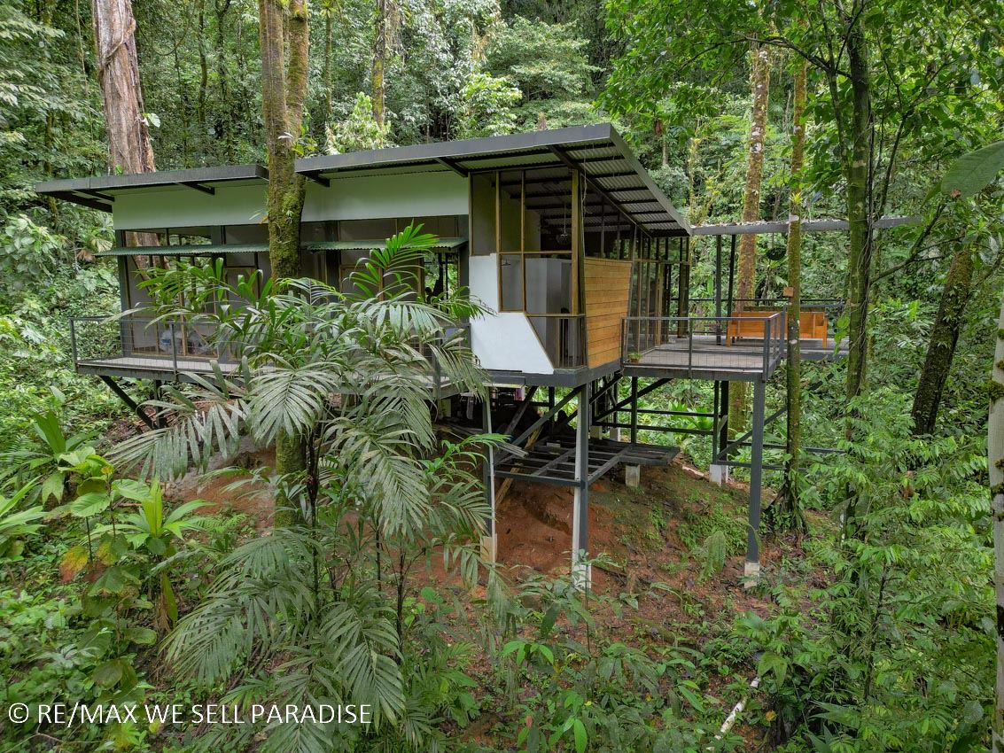 For those seeking an immersive experience, surrounded by lush jungle but featuring full & unique comfort, this property is waiting to provide you with unforgettable moments! Come connect with the rainforest in this cozy home nestled in the buzzing jungle of Costa Rica’s southern zone. This place is designed to recharge your batteries and disconnect you from the rush of everyday life. Enjoy the peace and quiet, and when it gets warm you can cool off in the nearby burbling and cascading river. Holy peace and serenity! May I add that this property is a PERFECT location for a home or research base if you are a biologist or environmentalist!