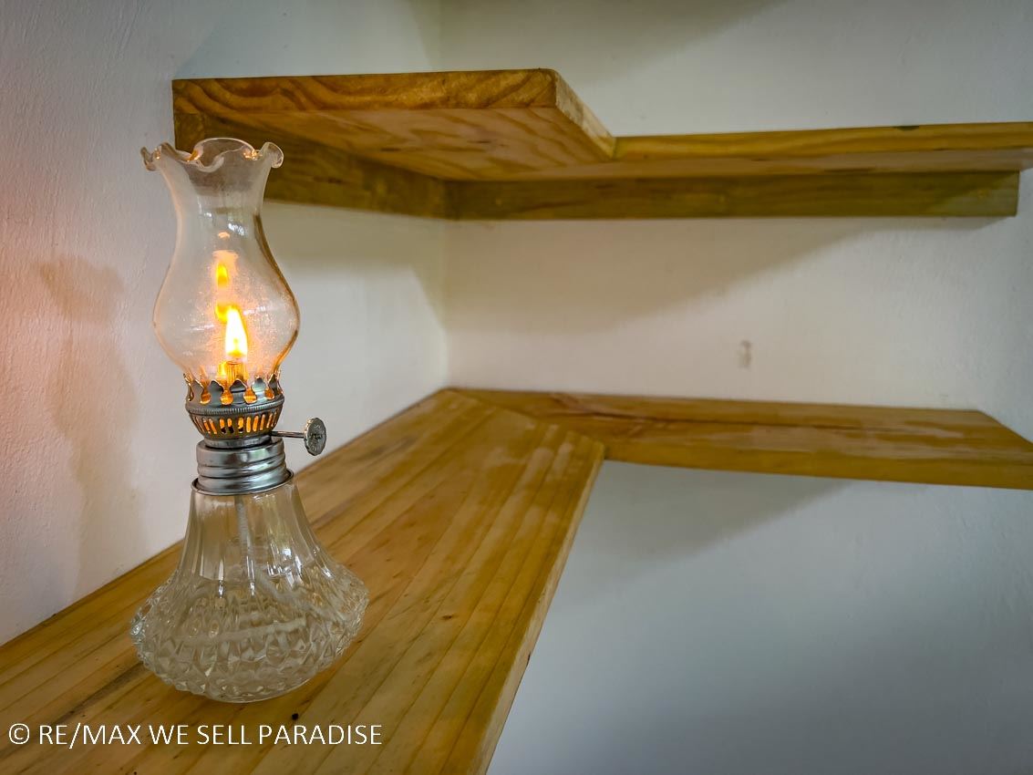No electricity but all wiring and bulbs are installed. An option is to add a small diesel generator or build a small hydro-electric plant on the nearby river!
