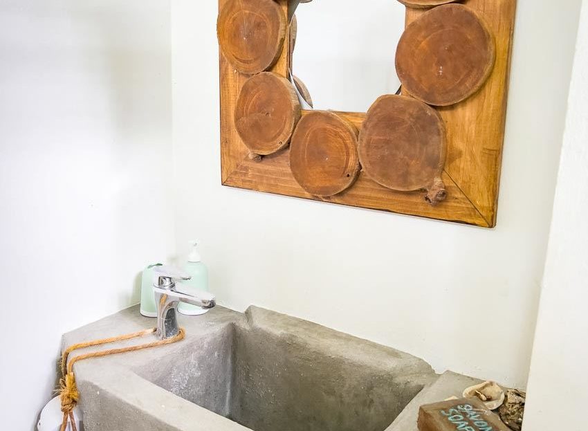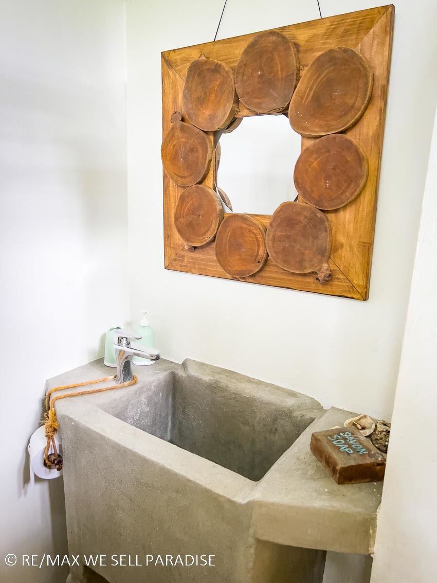 BIODIGESTER SYSTEM The house contains a biodigester toilet system. It is a sustainable and ecological sanitation solution designed to treat human waste while minimizing environmental impact. Human waste, without toilet paper, is collected in an underground biodigester tank. Inside the tank, waste is filtered through volcanic rocks. By adding microorganisms, they break down the solids and return to the Earth as clean water.